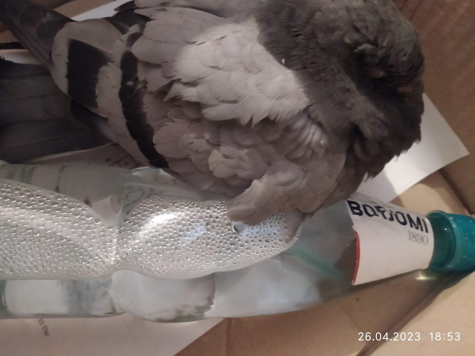 Опять голубенка нашла возле дома. С работы шла корм несла стае. А он неподалеку лежал. Я думала умерший, он лежал, как будто мертвый. Подошла, а он глаза открыл и посмотрел на меня. Очень слаб был. Домой принесла. Дома другого голубя как раз лечим. Глюкоза и шприцы есть. Сразу сделали укол глюкозой 1мл. Водички дали насильно. Лапки уже холодные были. Глаза закрытые. Сейчас не лежит, встал, вроде дышит, но слабо. Никаких повреждений не заметили. Бутылку с теплой водой рядом поставили. Что делать дальше? Он без сил Ах, да, еще кальций д3 никомед дали Ах, да, еще кальций д3 никомед дали И в клюв тоже глюкозу дали Никаких повреждений не заметили Помета нет