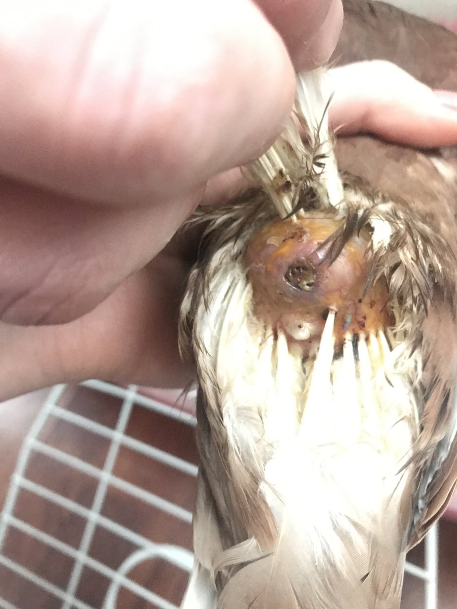 Взяли голубя. Девочка. Увидели, на спине огромную шишку. Прочитали тут на форуме, что нужно колоть цефтриаксон. Прокололи неделю. Ситуация не изменилась. Голубка чувствует себя нормально. Ест, пьёт хорошо. Под последние дни уколов была такая странность, что колю препарат, а он с других дыр в этой шишке выходит. Что это вообще может быть? И как нам вылечить голубку? Помогите, пожалуйста!