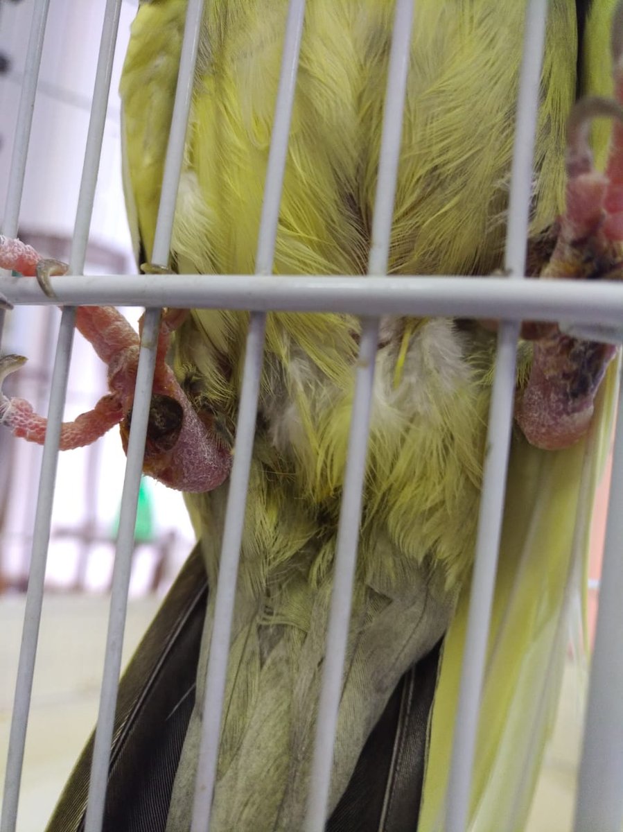 2. Добрый день!У попугая появилась шишка на правой лапке. Большая темно-коричневая. Видимо мокнет. Он не дает посмотреть. Вторая лапка начала чернеть и на ней появилась трещина. Подскажите пожалуйста, что это может быть такое? Попугаю больно сидеть на левой лапке, стал выдирать из себя перья. Мальчик.В клетке находится не один. У второго попугая такого нет
