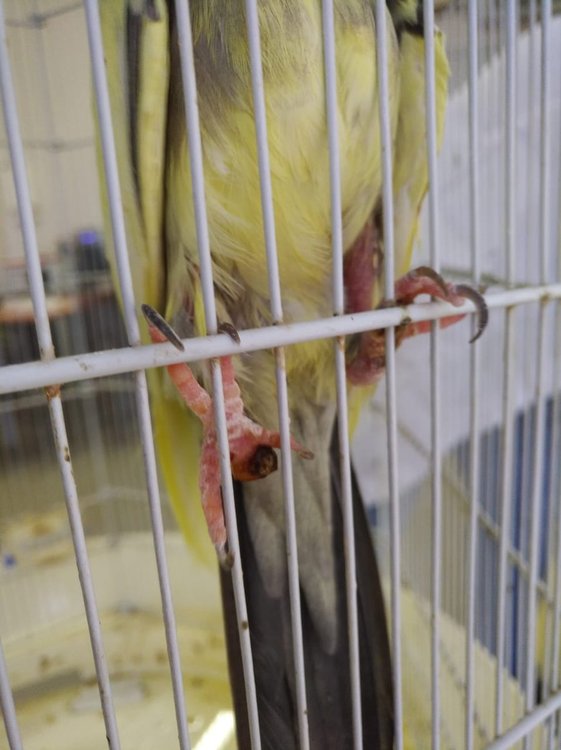 Здравствуйте, у волнистого попугая возраст 4 месяца появился прыщик на правой лапке. Ест корм престиж, морковку и капусту сепия, мин камень в клетке есть Первое фото примерно 4 дня назад было, на втором фото состояние лапы сейчас