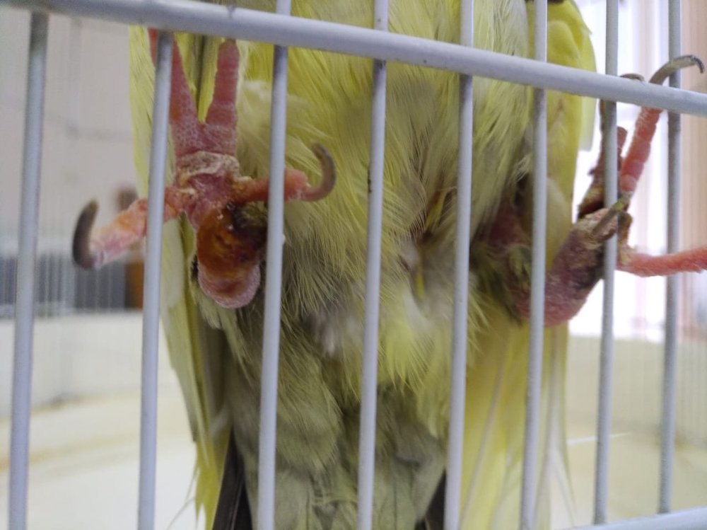 Здравствуйте! У голубки на лапках, возле когтя, болячка. Сначала было вздутие, теперь крупные струпья. Вроде, струпья скоро отвалятся, но не хотелось бы повторения. Что это может быть, и чем помазать?