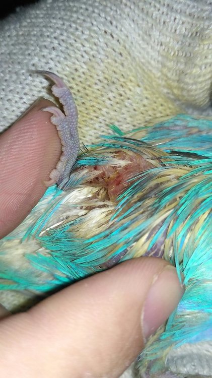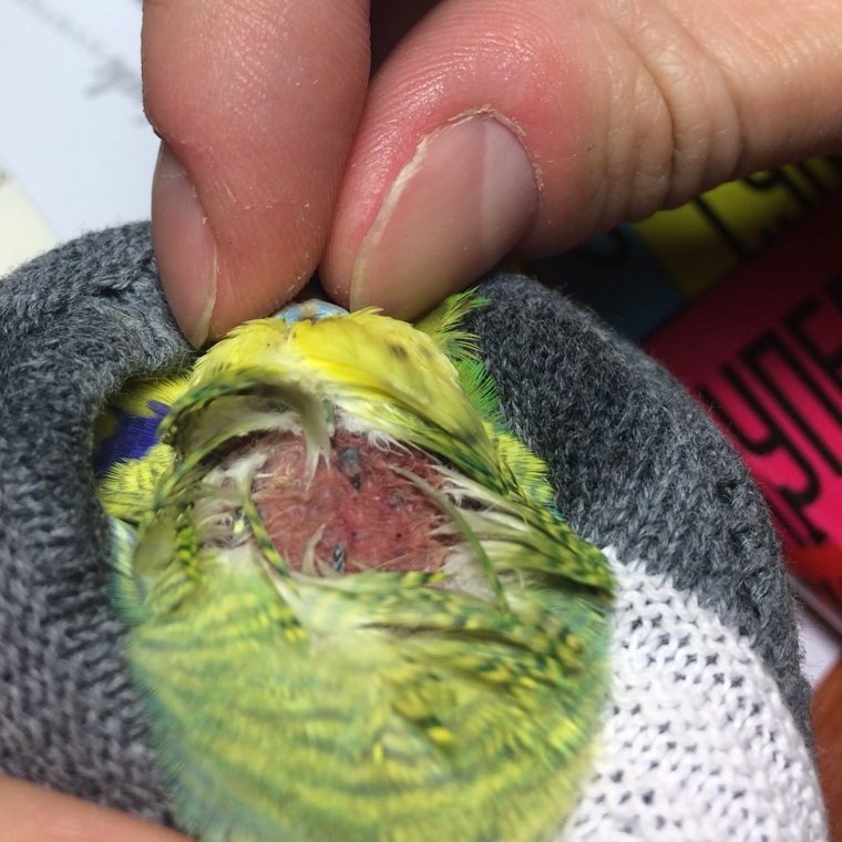 Пол попугая: самец Возраст попугая: примерно 9-10 месяцев. Точнее сказать не могу, я принесла его домой той осенью и он уже был достаточно взрослым - где-то сродни 6ти или даже 7ми месяцев Название корма (производитель): Рио СМ. Фото "6. корм" Суточная порция зерносмеси на попугая: 2 ч.л., но бывает, что больше =( Есть ли в клетке минеральный камень, мел, сепия?: есть, но он его совсем не кушает есть подкормка Rito-Grit СМ. Фото"7. подкормка" Получает(л) ли ранее попугай витамины?: нет Как и что ест: Горошек ест всегда, будто у него зависимость от еды, т.е. активно. Он категорически не хочет есть ничего, чем, судя по всему, не кормил его продавец, занимающийся разведением: никаких овощей, кроме морковки не принимает; яблоки, груши и бананы есть не хочет; каши тюкает клювом и выплевывает. Длина светового дня попугая: около 13-14 ч. Размеры клетки: около 73х63х33 Расположение клетки с попугаем: в углу комнаты, комната освещается солнцем, ниже уровня глаз Болел ли ранее попугай?: Да, около месяца назад у него был самоощип вокруг клоаки, был несколько апатичен, хохлился, раскачивался СМ.Фото "8. прошлый самоощип" Симптомы болезни которые вы наблюдаете: 21 марта - сонный, раскачивается, глазки прикрывает и хохлится; более напуган, если подходить (он не особо садился на палец ранее, но НЕ пищал, если его аккуратно гладил пальцем или подставлял под лапки); проплешина на голове, кожа красная, черные непонятные штуки на коже (напоминают насекомых, но не насекомые) СМ. Фото "1. проплешина - сухая голова", "2. проплешина - мокрая голова", "3. проплешина - мокрая голова", "4. проплешина - мокрая голова"; лапки кажутся суховатыми СМ. Фото "5. лапка". Болел ли ранее: совсем недавно, но мне казалось, что мы его вылечили; был самоощип у клоаки. Возможно, что оно все еще продолжается и это та же самая болезнь? Как давно появились первые признаки заболевания у попугая: 21 марта подошла к клетке и увидела ужасную проплешину! Поднесла руку, а он забился. Погладила по голове, приговаривая, что Горошек хороший, но он стал душераздирающе попискивать! Ему больно! Дополнение: около месяца назад стал выщипывать перышки из попки, помет был немного жидковат. И он сильно чихал достаточно долгое время, ромашка все еще не помогает, хотя чихать стал меньше. Продезинфицировала клетку. Также давала тетрациклин в воде, обмывала попку водой, мирамистином и мазала левомеколем. Попка вроде пришла в норму, стала пушистой, но каки сейчас иногда свисают с перышек. Помет нормализовался. 22 марта - черные точки совершенно статичны и не ползают. просто будто впаяно в кожу. я не думаю, что он мог ободрать кожу, он обожает свою клетку, постоянно сидит со своим зеркалом. сам вылезал только пару раз, так как на клетке у него тоже еда. а он не мог сделать это лапкой? - у него перья, будто Горошка жевали! мне кажется, что есть покраснение вокруг глаза, но не само "веко", а именно кожи вокруг него(( и + я думаю, что есть проблема с носиком (он покоричневел по краю снизу) и с лапками (опять покраснение). я заметила, что когда он сидел на жердочке, то не совсем смыкал пальчики, и даже больше, когда я достала его, чтобы сделать новые фотографии, он не просто пищал, а буквально орал ча-ча-ча не только от страха (помнил вчерашний фотосет, он будет меня бояться и ненавидеть всю жизнь!), но и от боли. Но потом я отпустила его в клетку и он сел на палец, после чего я его аккур