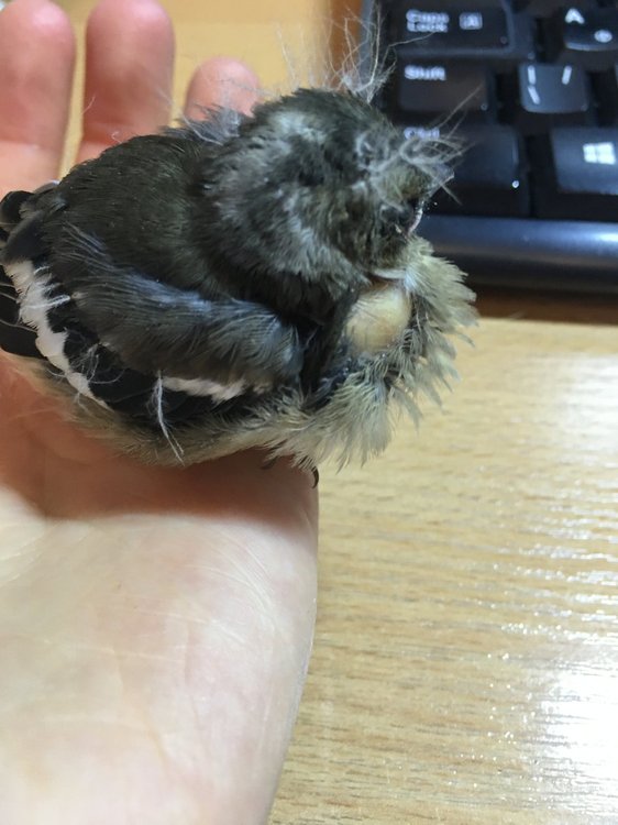 5. Здравствуйте, уважаемые пользователи! Вчера подобрали птенца неопознанного вида, по внешности напоминающего воробья, кормили только мешанкой и водой. Недавно заметили вот такую опухоль наверное на зобе, в области чуть выше киля и ниже шеи. Что делать? прошу, помогите!!