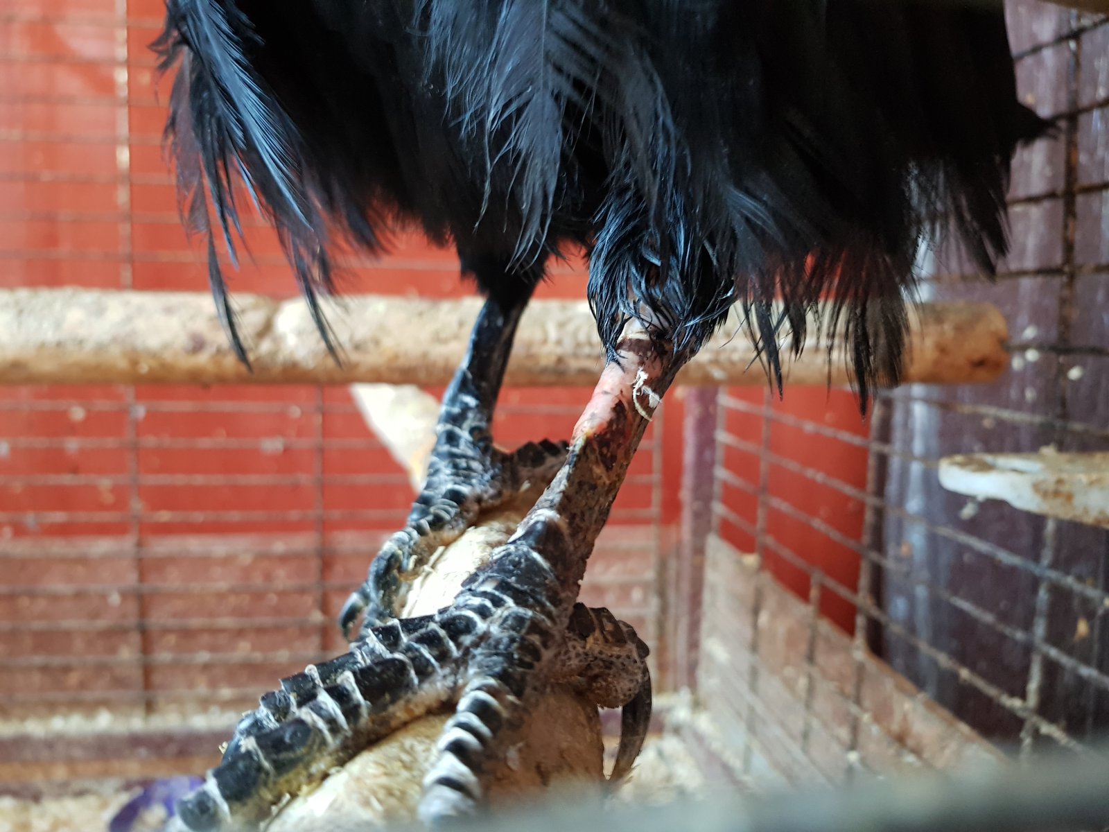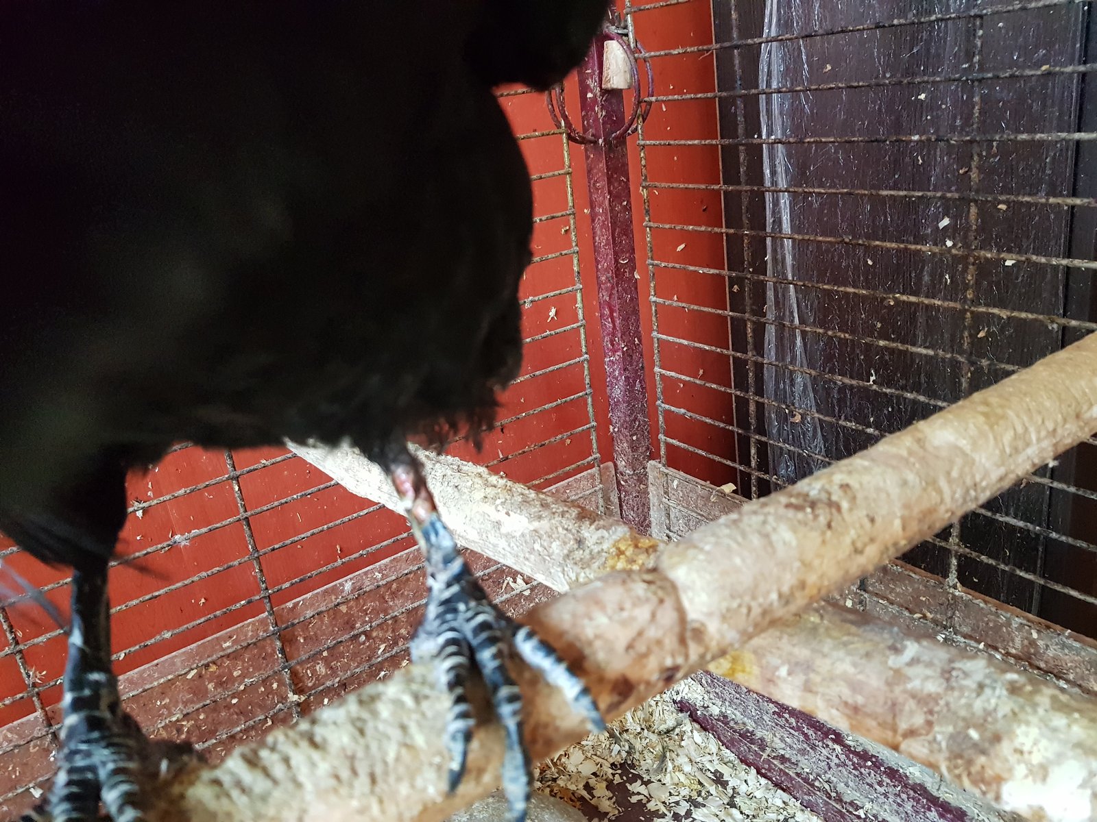 Здравствуйте. Ворон, ~17 лет Пол, предположительно, мужской. Рацион: Яйцо перепелиное 1 р.д., Мясо сырое 2 р.д. Мешанка на основе гречки или пшена с добавлением изюма, орехов, тертой моркови или тыквы, тыквенных семечек - около столовой ложки 1 р.д. Творог обезжиренный - около столовой ложки 1 р.д. Фрукты (яблоко/груша/мандарин/апельсин/банан) - около двух столовых ложек 1 р.д. Мышь мороженная (оттаявшая) - 1 р. нед. Периодически: мёд, насекомые (саранча/сверчки). Также в мешанку добавляю спирулину, ламинарию, голубую глину - щепотку. Молотая таблетка карсила - несколько раз в неделю (не каждый день). Содержится в квартире в клетке, с возможностью вылетать на разминку по комнате. Проблема Сегодня обратил внимание, что птиц не встает на одну лапу, поджимает, посмотрел - на "стопе", прямо в центре, заметное красное пятно, около 15 мм в диаметре. До этого пару дней птиц вел себя нервозно, но я списывал на то, что были изменения в интерьере комнаты, на это он так реагирует (может так и есть). В принципе, на лапу наступает иногда, но видно, что она его беспокоит. Вот думаю, может антибиотик какой ему нужно подавать? А если да, то какой ему не повредит? Буду благодарен за совет. Птиц не особо ручной - схватить, зафиксировать, как-то обработать лапу возможно, но путем большого стресса для всех участвующих сторон. Насчет занозы в лапе - по идее, все присады хорошо обработаны, не должны заноз давать, я их мою регулярно - за тряпку ничего не цепляется. Фото, которое получилось сделать, во вложении, стрелкой показал пятно. Так же еще вопрос по питанию - не повредит ли добавление в мешанку калины - на даче её нарвал специально для птицы, заморозил, но давать боязно - вдруг для них она яд... Для контекста, в марте прошедшего года обращался по другой проблеме с лапой (и лапа была другая) вот ссылка. На тот момент рацион был в корне неправильный, на что мне здесь указали. Вроде удалось перевести птицу на более правильные продукты.