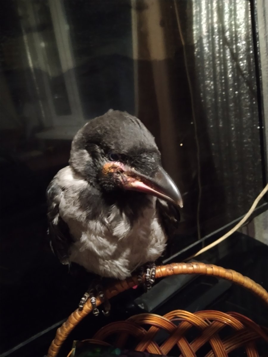 Здравствуйте, буквально вчера подобрал слеток ворона, нашел его на земле с распухшим основанием клюва, половина части клюва (изнутри) тоже распухла язык оказался сбоку. Решил что делов он сам не сделает, и забрал себе. Сходил домой за переноской, вернулся, он так же сидел на том месте. Уже дома начала смущать его ранка, почитал форум, промыл, обработал раствором йода, но вот проблема, практически ничего не ест, воду пьёт только из пипетки, а когда подношу еду (варёные яйца мелко потёртые, кусочки курицы) вообще даже рот не открывает, я пробовал и пинцетом и рукой положить в пасть, он начинает трясти головой и все выбрасывать из клюва. В других аспектах все хорошо, прошёлся по квартире, постоянно чухается, каркает, летать не умеет пока, стабильно испражняется, только чем если не ест? Вообще не знаю что делать, нужно ведь раз в час полтора кормить, завтра отвезу к врачу, но продержится ли он до завтра? -