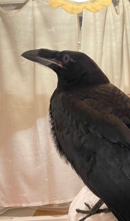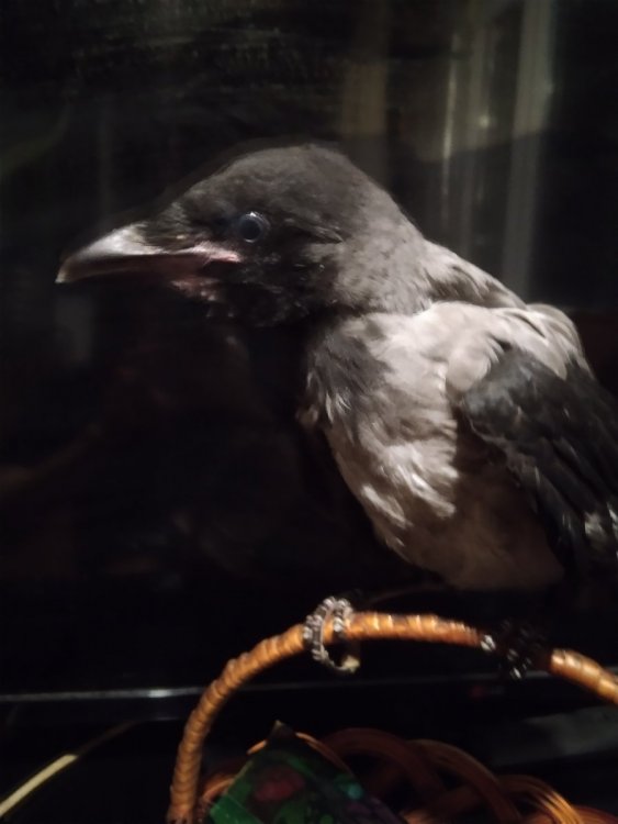 Здравствуйте! Буду бесконечно благодарна каждому, кто сможет поделиться со мной рекомендациями и ответить на вопросы. На районе был замечен уже точно скитавшийся несколько месяцев ворон. На днях забрала его домой. Птица явно была выкормлена человеком, ибо только что и делала, что собирала на улице вокруг себя людей и брала еду из рук, очень ленива на полеты, даже от рук и желающих поймать просто отпрыгивалась или ушагивала, не улетая с места. Со слов очевидцев - она просто садилась и могла сидеть на одном месте долгое время, собирая еду от прохожих. Это и я наблюдала, осознавая, что ручной ворон не жилец на улице. Поиски приручившего человека не увенчивались успехом, был сомнительный отклик, где человек даже не смог указать отличительные особенности (у ребенка давняя зажившая травма пальчиков), активных поисков по группам и районам тоже не обнаружено. Опутинков не было. У меня стойкое ощущение, что птицу вскормили птенцом и по незнанию просто выпустили на волю. Обращаюсь к знающим с вопросами: 1. Верно-ли я поняла, что это подросток? (1-1,5 года) Глаза темные, но уголки клюва розовые (видно когда открывает) и пасть внутри еще нежно-розовая, как и язык, темнота только начинает проявляться с кончиков. Оттенок перьев пока коричневый, черной синевы нет. Понимаю, что не возможно определить пол без анализов, но у меня внутренняя чуйка, что это самка, да и характер похож: возмущается деликатно, кричит редко, очень быстро приняла меня, агрессии пока минимум. 2. Опишу ее поведение касательно меня: было опасение от нее и сторонилась в первые сутки нахождения, видно было, что стрессовала, даже не передвигалась по лоджии, застыла на одном месте, на второй день появился активный аппетит, стала изучать лоджию, села на обустроенные для нее жердочки и приметила деревянный мольберт ( на нем ей нравиться спать), в течении дня я с ней общалась, играла (ребенок мною завален игрушками: погремушка, пирамидка, закрытые пластиковые стаканчики с игрушкой внутри и прочее, особенно ей нравиться ловить клювом в воздухе мягкие шарики для кошек). Первое время пыталась прикусить часто, когда я тянулась погладить, к вечеру уже во всю ела из рук и давала себя погладить. Несколько раз покушалась на пальцы, на что закрывала ей клюв и меняла интонацию на "Нельзя", быстро понимала. Один раз ущипнула спину, когда убиралась на лоджии и повернулась к ней спиной. Все время пыталась отнять тряпку, но как я понимаю это просто она играется? В общем птица доверилась быстро и похоже, что уже ревнует к остальным членам семьи, включая кошек. Просит моего внимания, ест активно даже спрятанное только когда я прихожу и сажусь рядом, крутиться возле меня. На эту тему хотелось бы прочесть ответы тех, кто сталкивался с уже взрослым вороном: 3. Очевидно, что птицу не учили полетам, какой схемы возможно придерживаться, чтобы приучить молодого ворона к опутинкам и безопасным выгулам? Ест такой шанс касательно годовалых? У птицы масса свободной энергии и не представляю как реализовать ее без полетов. 4. Какие шаги по приучению к запрыгиванию на руку? 5. Какие есть безопасные и натуральные средства для обработки от паразитов без посещению врача? Хочу подождать, прежде чем вести к орнитологу, чтобы не создавать дополнительный стресс. Никаких критических травм или заболеваний у птицы точно нет. Есть-ли какие про