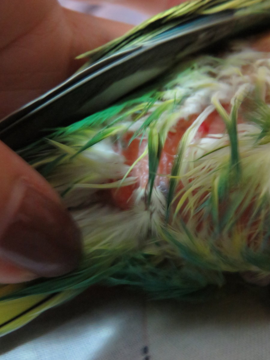 2. Добрый день. Вчера вечером наблюдался жидкий помет с примесью яркой алой крови. Утром под клоакой красная шишечка. У птицы сильный зуд, что сопровождается ощипыванием перьев. Фото прилагаю. Шаблон позже. Я час пишу это сообщение. Отвлекаюсь на птицу. Не даю чесаться и щипаться