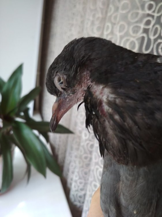 Здравствуйте! Подобрала голубенка на своём балконе. Его клевали другие голуби, я его просто накрыла майкой и так поймала. Он пищал, а не уркал, и я поэтому думаю что он ещё маленький. Но летать видимо умеет, я живу на третьем этаже. В общем голубь не открывал глаза, они были залеплены. Я промыла мирамистином. Сейчас глаза открываются, поэтому мирамистином промыла только сам гной. Может это пища попадала в глаза и загноилось. Куплю фурацилин, и попробую им промыть если можно. Можно так? Есть умеет. Купила проссо. Но пытается есть самые мелкие кусочки. Пшеничная дробленная каша и Геркулес ему очень нравится. Ест мало, глотает с трудом. Запаривала. Запаренное прилепает к клюву и ему не сильно нравится. Пить не умеет. Напоила из шприца дважды сегодня по 10 кубиков 2 раза вчера. Не пищит после первой кормёжки. Я испугалась и купила сумамед и флуконазол. Развела суспензии даю как было описано где-то в на этом форуме. Но утром снова глаза залеплены были. Капнула от безысходности торбексом и промывала водой глазки. Стали лучше. Ноздри свободные. Во рту не знаю как должно быть, ротик чёрный. Подскажите как кормить, чем? У меня много круп морковь, яблоко.. Сделала ему в кошачей переноске гнездо из сухой травы. Налила в мисочку воды, но пить у него не получается даже если окунать клювик. Птичка активная, но слабая. Я не очень понимаю что с ним делать. Помогите советом. Фото или видео попробую выложить.