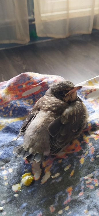 Добрый день! Вчера гуляла в парке и наткнулась на птицу, которая прыгала по земле и не взлетала. В птицах не разбираюсь, поэтому поймала и отнесла в вет. клинику недалеко от парка. Ветеринар сказал что это стриж, предположил, что он ударился, сделал обезболивающий укол, предложил немного подождать, посадить на руку и надеяться что полетит. Но чуда не произошло и было решено забрать домой на ночь, чтобы утром попытаться снова. Когда эмоции схлынули, с удивлением обнаружила, что на стрижа птах совсем не похож, поиски привели к предположению, что это дрозд-рябинник. Позже, немного разобравшись, оказалось, что дрозды-рябинники предпочитают передвигаться по земле и не взлетают при приближающейся опасности, а прячутся за что-то. Теперь есть ощущение, что я по своей глупости заставила нервничать животное, птах шел по своим делам, а тут сердобольная я попалась. Но смущает, что в хвосте всего 2 пера, а на спинке есть перо, от которого остался только стерженек, ощущение, что его все же кто-то потрепал и с полетом действительно проблемы. При осмотре ветеринаром сломанных костей обнаружено не было (на ощупь). Подскажите, пожалуйста, как он должен себя вести, если здоров, норма ли что он от меня не улетал и дома тоже не пытается летать, хотя сидит в открытой коробке (возможно она конечно тесная, но бОльшей не нашлось). Поведение, которое могу описать: 1. Сидит в коробке, когда подносишь руки иногда не двигается вовсе (думает что покормят думаю), иногда встает и убегает в другой угол. 2. При попытке взять в руки верещит, ругается, но не слишком активно. 3. Ест с руки, подносишь, открывает клювик и забирает. Кормила сверчками (сначала думали что стриж и купили для него), ест охотно, пробовала давать виноград, ест, но сверчков ест лучше. 4. Пару раз вылетел из рук, когда доставала его чтобы осмотреть или поменять подстилку, вспархивает, но практически сразу падает на пол. Помогите, пожалуйста, разобраться, стоит ли дальше за ним ухаживать или я по незнанию вырвала здоровую птицу из привычной среды обитания. Боюсь, что выпущу, а у него действительно проблемы, которые не удалось установить.