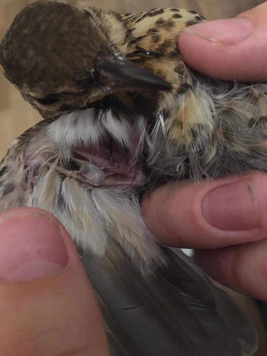 9.06.2020 г в 21.00 на дороге подобрали взрослого дрозда рябинника, сидел раскрылетившись и дрожал крыльями. Взяв в руки он весь обмяк. Принесли домой посадили в большую клетку. Клюв был слегка приоткрыт примерно на 5 мм. Сам не ел, не пил. Поили из пипетки по чуть чуть. Кормили мешанкой ( морковь, яйцо, ламинарии, корм Падован для насекомоядных) + консервированные сверчки и 3 дождевых червя. На вторые сутки сам не ест, но подходит пить из пипетки. Кормим принудительно. Клюв раскрыт ещё больше на 1-1.5 см. Что это означает ? Какой должна быть консистенции мешанки при принудительном кормлении , что бы не забить зоб ? Какое количество еды должен съедать дрозд ? Так же даём ему 1 каплю Тиамин и Пирацетам в ампулах 200 мг/мл 1 каплю ?2 раза в день. Сегодня пытается взлететь в клетке , но очень слаб.