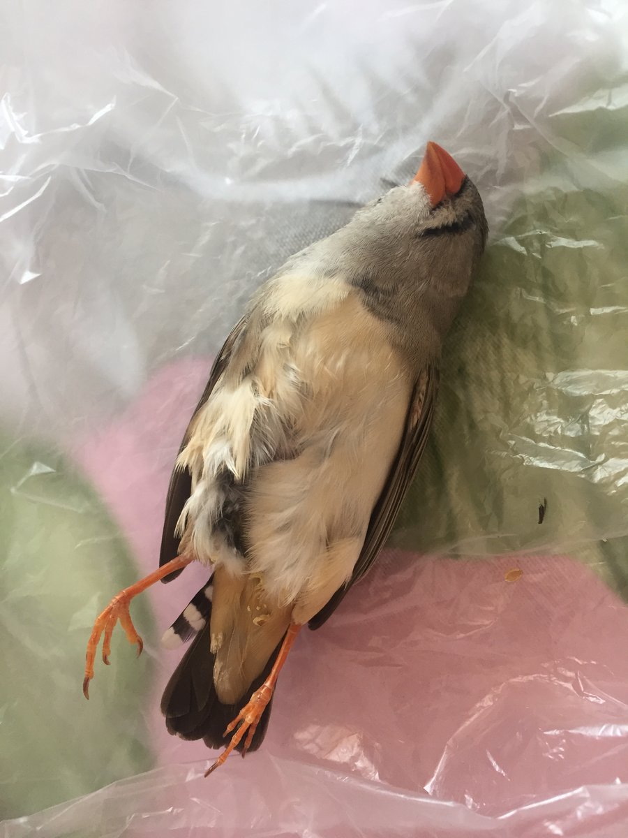 Подскажите, что делать?? Сегодня (25.06.18) умерла самочка зебровой амадины, звали Агния. фото прикреплю. Вчера вечером заметила, что она лежала на дне клетки (хотя выпускаю их с самцом Феликсом на волю, и в клетку залетают очень редко, только за едой. спят в другом, специально обустроенном для них месте). Так вот, лежала Агния на дне, я думала, что спит, т.к. дышала и вздрагивала, когда Феликс её звал. Не стала беспокоить, выключила свет и пошла спать, теперь понимаю, что зря... На утро было обнаружено тело, всё так же в клетке, причины смерти неясны, может, будут какие-то варианты? Сейчас расскажу, как всё было: Были подарены на день рождения в ноябре, в магазине сказали что их др в августе. Достаточно молодые особи, поэтому совсем не понимаю причины смерти здоровой, живой девчушки. При жизни была очень активной, активнее самца, очень любопытная, везде всё исследовала первая...ничего не предвещало, как говорится Кладка была одна, всего около 7-8 яиц (все пустые, естественно) на протяжении месяца-двух. Потом гнездо убрала, вроде бы прекратили брачные весенние игры, убрала уже давно, месяц прошёл точно. Был вариант, что ей не удалось разнестись, что яйцо могло застрять, но прощупала трупик, вроде бы все в порядке, но может не правильно делала что-то, конечно. Питались зерновым кормом, пили водичку, купались в купалке, летали по квартире, все было хорошо. Только последнее время стали с Феликсом немного драчливые, гоняли друг друга и стучались клюв в клюв, но до жестких драк не доходило ни разу, предполагаю, что это просто семейные ссоры были) Феликс с утра сидел возле трупа Агнии, звал её, кричал, пытался за голову вытащить из клетки. Когда забрала тело, он всё так же по привычке пытался переговариваться с Агнией, но в ответ была лишь тишина. Теперь молчит тоже, лежит там, где они спали, забился в уголочек и грустит, полагаю((( Что теперь делать с Феликсом? Взять новую самочку не могу...Может, сдать в зоомагазин или отдать добрым людям, чтоб ему было не так грустно? На 1 фото малыши в день покупки; на 2 - первый опыт Агнии, первый раз выпустила из клетки, потом привыкли и возвращались на ночь спать в клетку, но потом перестали возвращаться туда спать и облюбовали иное место для сна; на 3 - они исследуют новое спальное место в своей клетке (спали в итоге на нем, как курочки-наседки, очень понравилось)); на 4 - просто совместное фото на свободе; на 5 - фото со вчерашнего вечера, когда уже она выбрала себе место для смерти, но признаки жизни подавала лёжа; и на 6 фото - само тело...