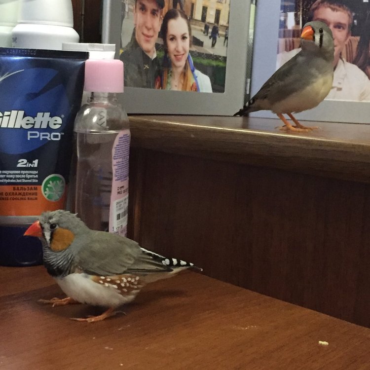 На каждой их современной прогулки самец стремиться быть рядом с самкой в любой точке дома, летает за ней из одного места в другое. Бывает чиститься перед ней словно красоту наводит, иногда может почти без остановки петь. Самка же спокойно реагирует на такое поведение, не отвергает его продолжает сидеть рядом, время от времени чирикает вместе с ним. Хочу отметить что спят они вместе на одной полке, рядом друг с другом. так же недавно у меня появился свой канал на YouTube там выходят ролики про совместную жизнь зебровых амадин и волнистых попугаев. Если кому интересно ➡️ https://youtube.com/channel/UCdnz82zjDD_gQ2wywMV_pEQ?si=RakeAVT0hwpP9Eth-