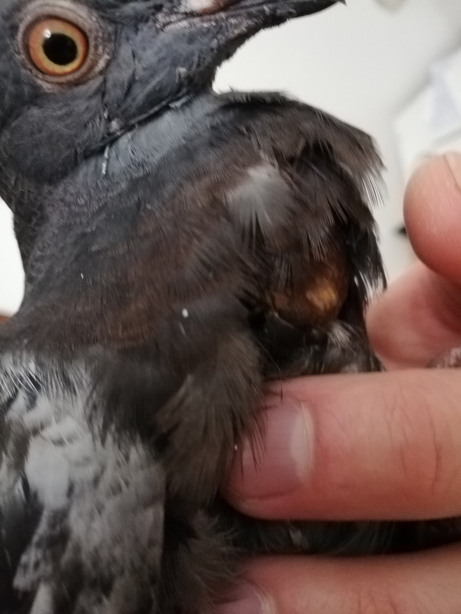 Здравствуйте. Подобрала голубя 3-4 месяца от роду. При осмотре : Травм нет. Трихомоноз есть. Наросты крупные, но еда и вода проходят. Зоб... Когда подобрала он сидел около рассыпаного кем-то зерна (перловка и пшено) и пристроенной рядом поилкой. Видно с голодухи наелся много и напился. Зоб раздутый до предела, аж перевешивает вперёд при ходьбе. Когда взяла в руки, голубь начал трепыхаться и из клюва полилась жидкость мутная. Вонища такая, что аж глаза режет (преимущественно прокисшей пищей и плюс специфический запах, который бывает при обезвоживании/истощении. Да, голубь истощён, киль торчит так, что порезаться можно. Со вчерашнего вечера 20.00 и до настоящего времени (у нас 13.30) давала трижды орнидазол, флуконазол в клюв, два раза уколола подкожно метрогилом, и раз 5 уколола подкожно Рингер-локка ( вет преп. раствор глюкоза+ натрия хлорид+ калия хлорид+ кальция хлорид + натрия гидрокарбонат+ вода для инъекций.) Помёта очень мало за это время. Зелёные кляксы в лужицах воды . Массировала зоб после дачи лекарств. Он стал чуть-чуть поменьше, но не намного. Если голубь начинает активничать, то опять из клюва льётся жидкость. На ощупь мягкий. Прощупывается зерно. Но то ли много воды , а может еда забродила и газы скопились. Вопрос: что можно сделать чтоб зоб заработал и пищеварение в целом? Это может быть отравление или он просто переел/перепил и такая реакция истощённого организма на внезапно обрушившуюся пищу?