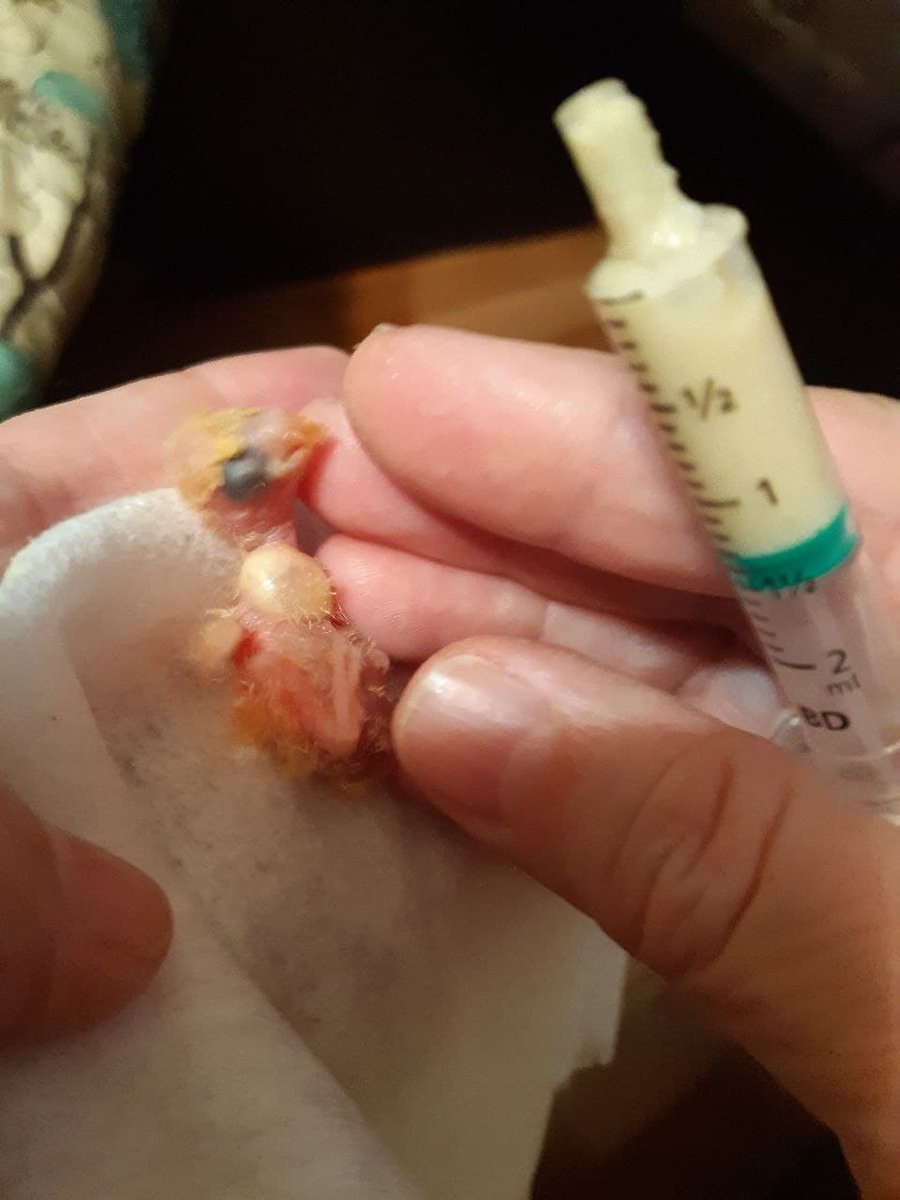 Добрый вечер, прошу помощи. Пара неразлучников отложила много яиц (8 штук) и растянули этот процесс, первых двух родители кормят, двух других не стали. 2 птенца умерли, одного кормим сами (6-7 дней) NutriBird A21, для него отдельное гнездо с температурой 34-36 градусов увлажнителем воздуха в комнате, кушает он с большой охотой и ведёт себя живо, но каждый раз после принятия пищи, в зобе появляется воздух, который потом приходится вытеснять. Кормим из шприца, он сильно барахтает головой, когда ест и как мне кажется не закрывает клюв и тем самым глотает воздух (не точно). Были у ветеринара (без птенца конечно), она посоветовала давать церукал 4 раза в день 2 капли и перед едой эспумизан каждый раз 1 каплю. Если кто ни будь сталкивался, подскажите пожалуйста, как предотвратить появление воздуха в зобе и чем это вообще грозит.