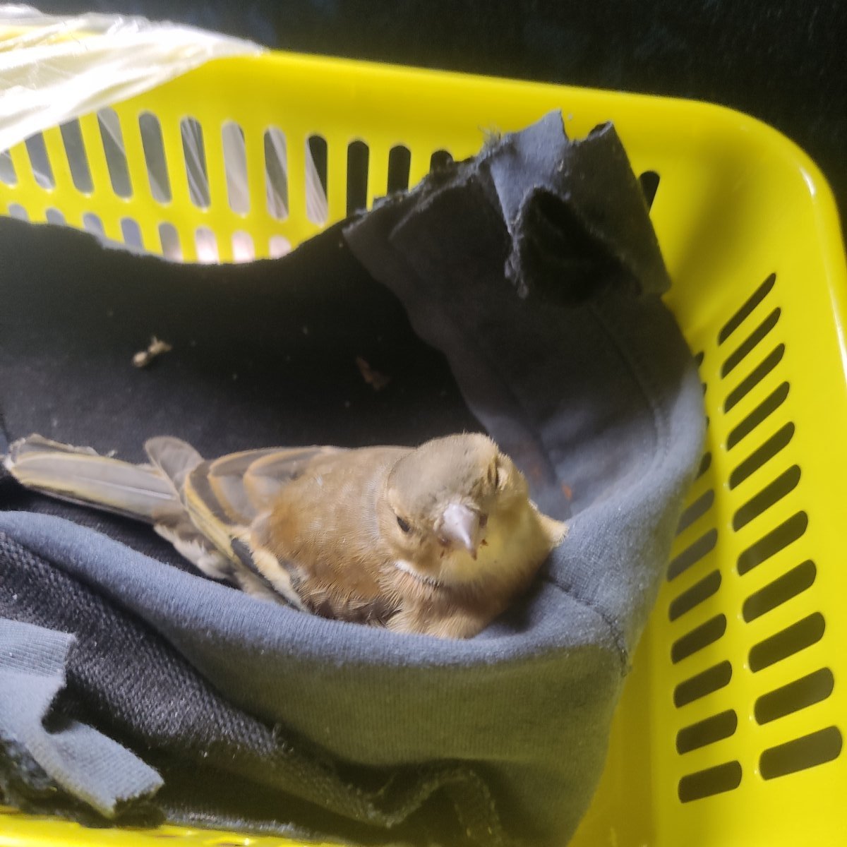 Здравствуйте! Нашли на трассе зяблика, похоже сбила машина. По симптомам-чмт(не открывается один глаз), сломано крыло (висит), сломан хвост (выпали перья). Где-то ещё кровит, не могу понять где. Сегодня уже нет возможности поехать к врачу. Чем можем в домашних условиях помочь птице? Посадили в коробку с дырками, свет выключили.