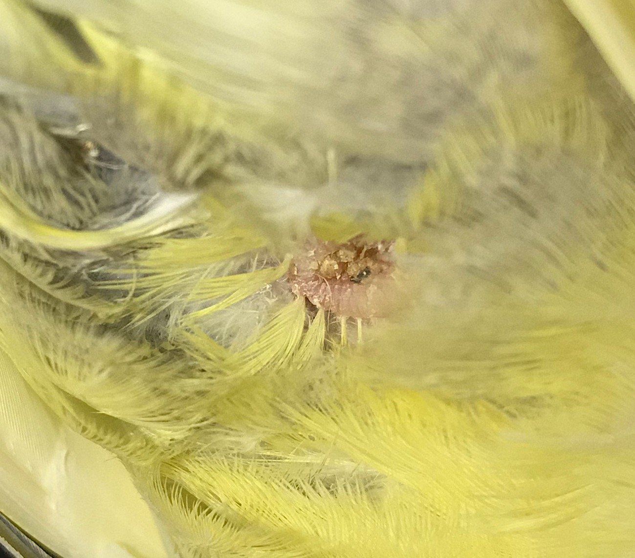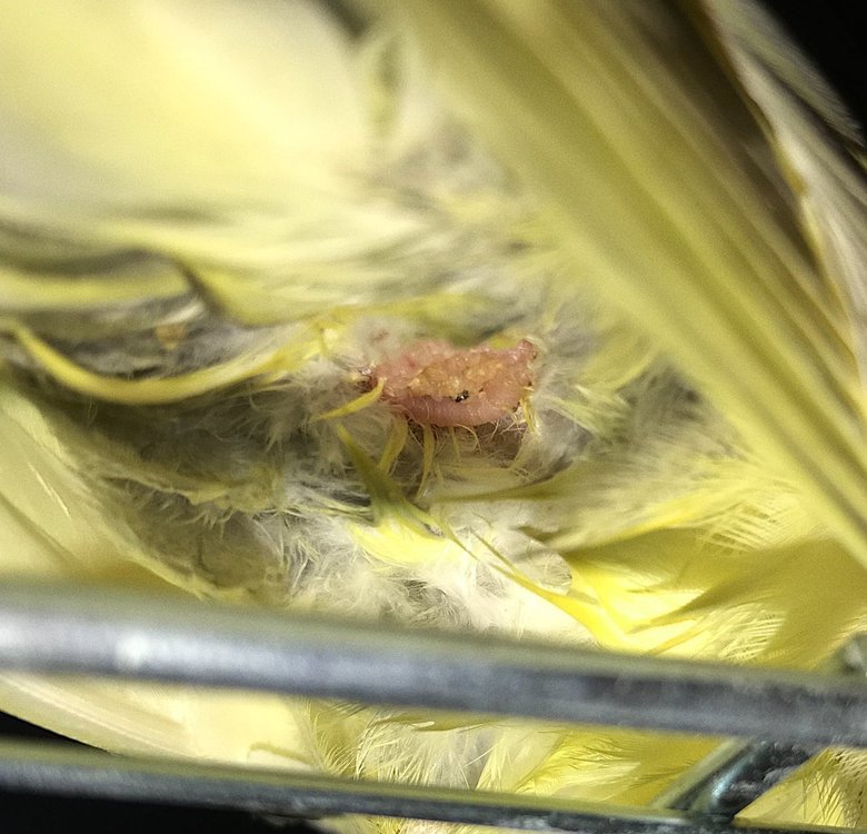 помогите кто может ..я не в курсе как должна выглядеть опухоль у волнистика просто заметила что попа немного полысела ,а так ест поет пьет водичку ...все норм..он у нас трусливый ..кошка у друга принесла мы забрали..так что не летает учим потихоньку из клетки выходить...перья на фото намочила не так сильно у нас голая попа
