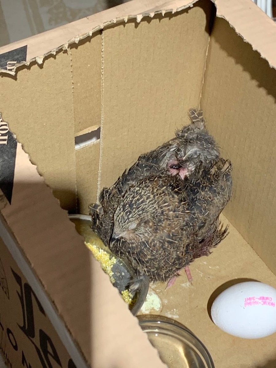13 июня 2025 года нашла (как я правильно поняла) выпавшего из гнезда птенца. по скорлупе рядом с ним вычислила что это воробушек. взяла ковшик, положила туда пух из крольчиного гнезда, сверху салфеточку и затем самого птенчика. с первого дня кормила мухами и давала из пипетки немного воды. сейчас уже 18 июня, он подрос, начинают появляться перышки, но глазки еще не открылись. его "домик" стоит в предбаннике, там тепло но не жарко, как я поняла птенцу комфортно. кормлю его +- каждые полчаса (в первые дни жизни каждые 15-20 минут) тоже мухами и конечно даю ему воду. !!!!!хотелось бы получить советы по дальнейшему выкармливанию и содержанию птенчика, как правильно с ним обращаться и как за ним правильно ухаживать. заранее спасибо P.S. 1 фото- 1 день, 2 фото- 5 день