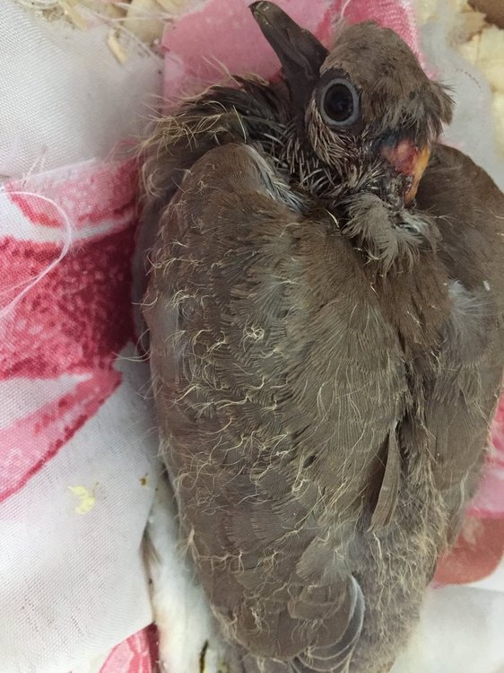 Добрый день! Помогите, пожалуйста, советом ! вчера вечером нашли голубя, маленького, с повреждениями, ниже пришлю фото как выглядит на данный момент. Обрабатываю хлоргексидином, делала примочки т.к изначально была корка кровяная, кормлю через шприц варёным яйцом в большей степени желток( прочитала в интернете), сегодня после отработки хлоргексидином обработала левомеколем. Обратилась к ветеринару, сказали обрабатывать хлоргексидином и все, но мне кажется ему нужен антибиотик, потому что появилось желтое пятно похожее на гной.. на фото видно. Заранее благодарю за ответ. Может посоветуете антибиотик и дозу, так же прочитала что его дают с карсилом и нистатином так ли ? Вес 125гр.