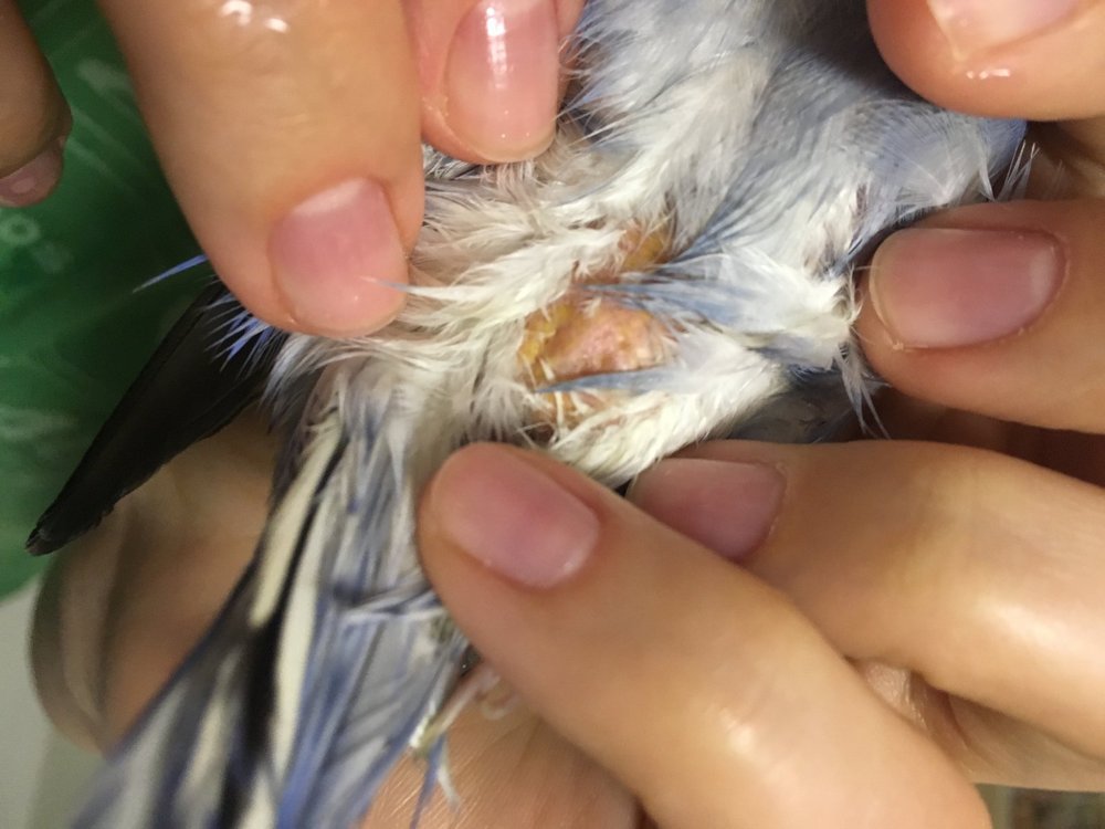 Опухоль у волнистого попугая, прогрессирует и птица сама себя расклёвывает