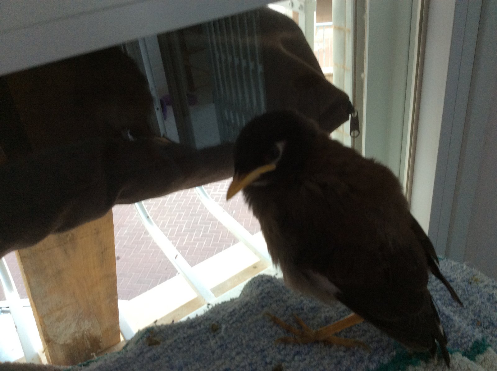 2. Всех приветствую. 2 месяца назад подобрали птицу Майну обыкновенную, аппетит был хорошим, бегал, прыгал, радовался жизни и с утра до вечера пел как не в себя. Но через 2 недели мы обнаружили что птичка начала ходить на одной лапе, но по прежнему бегала и прыгала, отвезли к ветеринару, врачи были некомпентеные и просто предложили усыпить через две недели, изменив рацион, начали кормить мотылями, червями, все начало становиться хорошо, иногда мазали мазь. Но вот снова что-то пошло не так и лапа скривилась слишком сильно..