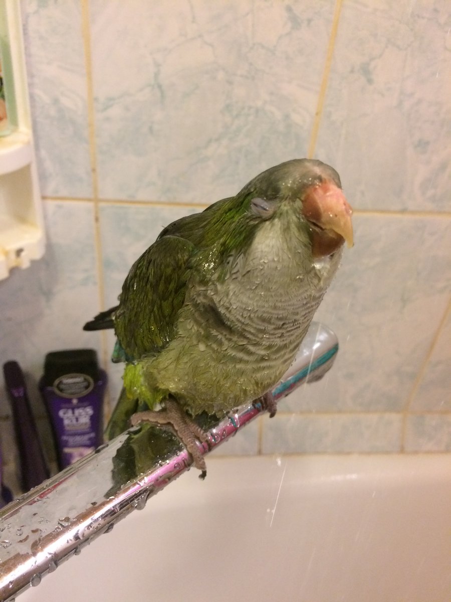 Так получилось, что у нас совсем незапланированно появился попугай, с гордым именем Жора. Прежние хозяева завели котика, и сделали выбор , к сожалению, не в пользу попугая. Жора- гопник и разбойник. Я это поняла сразу, как только клетку занесли в дом. С Абсолютным отсутствием воспитания и с желанием все разгромить, Жора вошел в нашу жизнь. Жора любит мусорить, он просто подходит к миске с кормом и начинает вышвыривать оттуда все, что недостойно его внимания, если вокруг клетки разложить землю и все это поливать, вокруг клетки разрастется приличный такой газон. А еще Жора собственник, но как я почитала. все монахи такие. Поэтому руки и пальцы к нему в клетку не пихаем. Все правильно делает Жорик, его дом-его правила, поэтому со своим уставом мы в его монастырь не суёмся. А еще Жорик очень ласковый, он совсем не громкий и не крикливый, как пишут про монахов, ну если только иногда, когда пролетающая муха вторглась в его владения. Вот тогда да, Жорик с громким криком как цепной пес кидается на эту жужжащую негодницу. Мы любим проводить время вместе, я обычно беру какую- нибудь книгу, ложусь, Жорик приземляется на коленке, и тихонько бормочет что-то, чистит пёрышки или спит. Жорик может открывать клетку, это для него вообще раз плюнуть, поэтому наша дверца всегда замотана проволокой, или закрыта на карабин. Потому что с прищепками он уже научился справляться Купаться Жора любит, но только в своей поилке. сколько не пробовала ставить ему купалки, или носить его в душ, он все отрицает. Только любимая поилка. Опрыскивание мы тоже не очень любим, сердимся и пытаемся слинять)) Все у нас хорошо, не считая того, что от прежних хозяев нам достались обрезанные подкрылки и хвост, которые надеюсь на вторую линьку полностью поменяются. И клюв у нас слоится, но это, как мне сказали от того, что у попугая было раньше скудное питание, и кроме корма и яблок он ничего получал. В общем принимайте нас в свою дружную компанию.