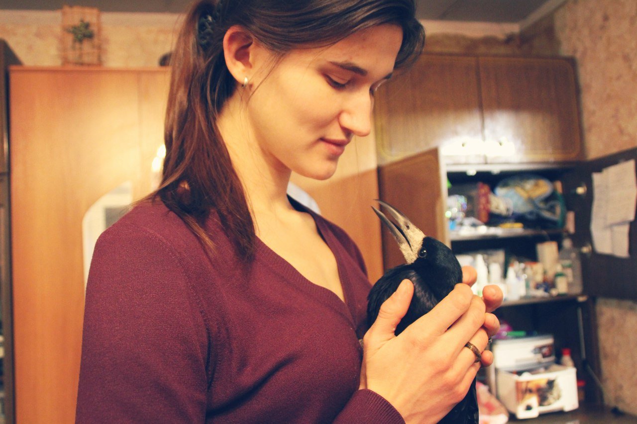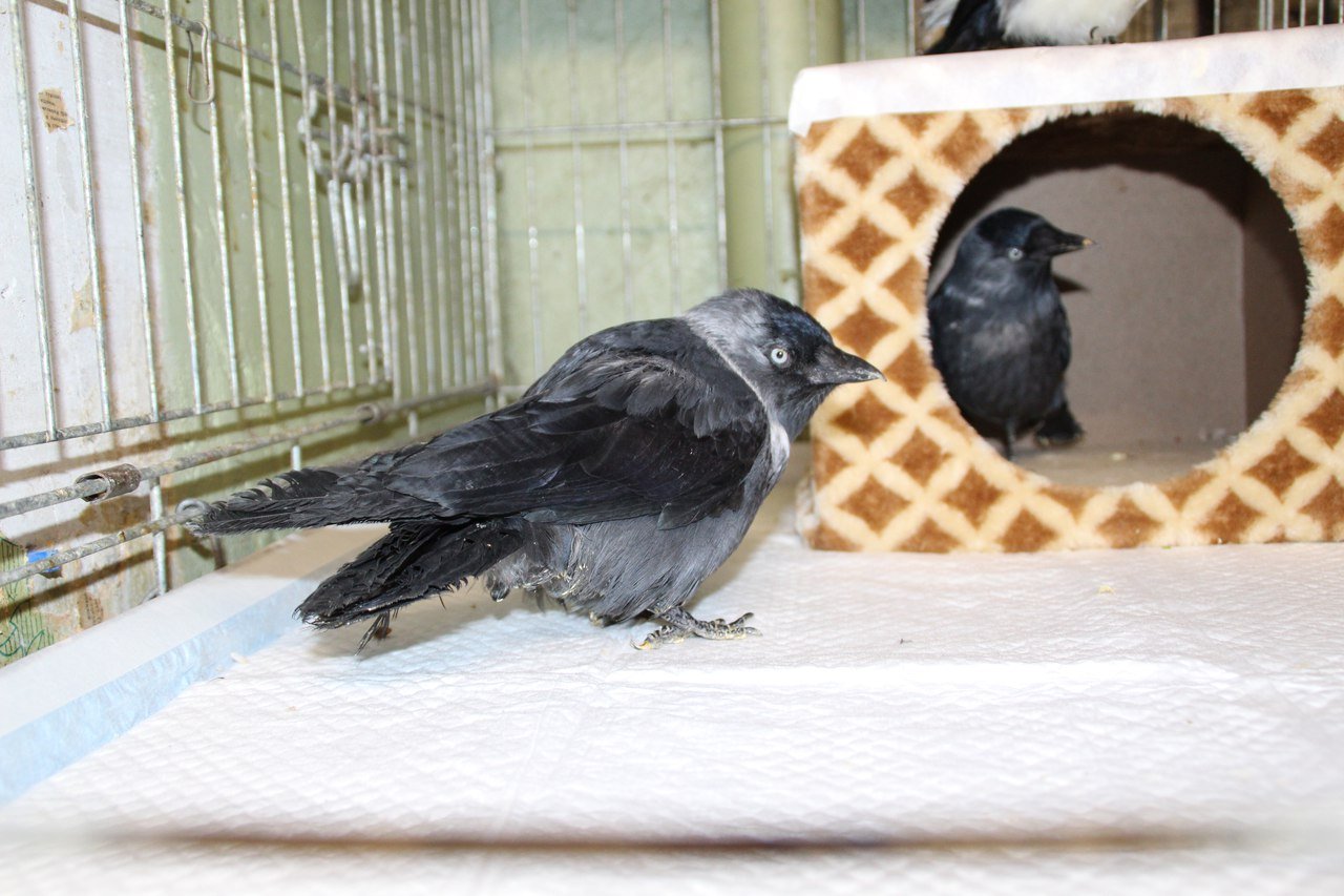 Подобрали ворону две недели назад. Сидела три дня около нашего подъезда под кустом. Явно ей становилось всё хуже. Дома воспрянула духом. Видимых повреждений нет. Есть ощущение, что есть проблемы с равновесием. Возможности заниматься и места нет. Дома ещё куча животных и маленькие дети. Помогите, пожалуйста, пристроить.