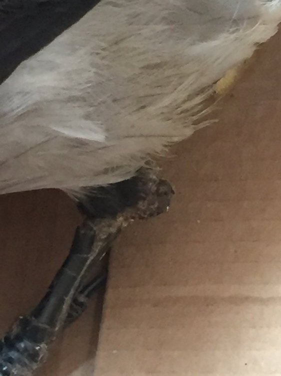 1. Помогите, пожалуйста, определиться что делать с вороной Нашли на улице - еле от кошек забрали Ест, пьёт, с виду выглядит здоровой, но на ногах какие-то есть наросты и словно ободранные крылья. Что это могут быть за наросты? И что делать? Возможно ли самим вылечит ворону или надо везти в клинику?