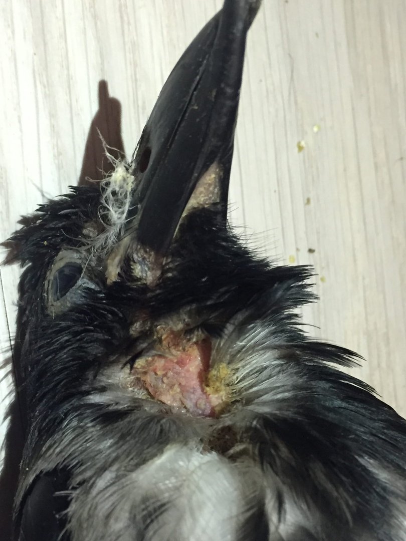 Доброе утро! В апреле мой папа спас ворону от кошек, я отвезла ее к орнитологу - ей вырезали две огромные шишки-оспы с лап, продезинфицировали крылья. Мне сказали, что через пару месяцев должны новые вырасти крылья и лапки уже заживут, и тогда ворона снова сможет летать. Но, если ворона старая, то крылья могут 2 года расти, а, если очень старая, то совсем не вырастут. И еще добавили, что есть вероятность, что оспа не вылечится и её тогда нельзя будет отпускать в природу, чтобы она других птиц не заразила. Через два месяца у Капитоши (моей вороны) крылья не выросли и она, не смотря на то, что оспу вырезали на лапках, хромала. Я уже поняла, что она вероятно у меня на всю жизнь останется и всё было оборудовано для неё. Периодически ходили с ней гулять на улицу, где она, кстати, сама не подпускала к себе других ворон, ела достаточно и дома и на улице, по квартире иногда в памперсе гуляла - прыгала. Каркала не стесняясь, когда еду требовала, которую ей хочется (яйцо больше). То есть была живой здоровой вороной, как мне казалось. Единственное, я точно поняла, что она очень старая ворона - не только по тому, что крылья не выросли и чешуйки на лапах, но и элементарно по внешнему виду, здесь не надо быть орнитологом, чтобы понять, что это старушечка уже. Так жила почти пол года и вдруг без всяких внешних изменений в поведении (ела также, прыгала также, каркала-требовала также) умерла. Я стала её внимательнее разглядывать и увидела, вот такое (на фото) на шее, ну а лапки были у неё такие с апреля без изменений. Для нас всех её смерть стала неожиданной, тем более что все полюбили её очень. И вот я хочу понять, что неё было (оспа всё таки не вылечилась до конца?) и можно ли было спасти, если бы раньше увидели такое на шее? Хочется понять, это наш недосмотр или уже безвыходная ситуация была.