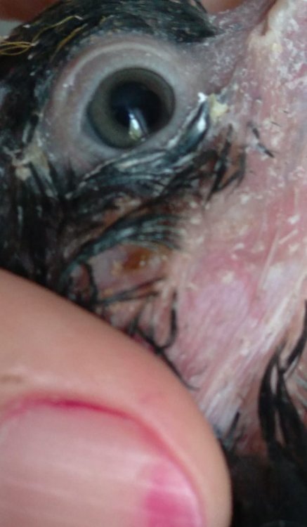 Подскажите пожалуйста,это оспа? Вес 150гр. Сталей,хрипов,слизи-нет На теле,в горле,в ключе внутренних наростов нет Активный,ест сам Помет в норме.