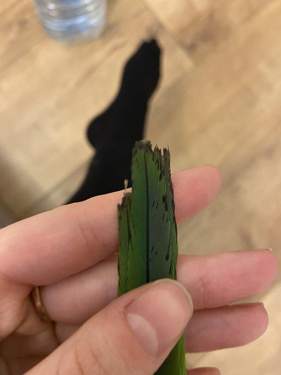 3. Здравствуйте, подозрения что у моей скворушки появился пероед, уже 3 месяца она не контактировала с другими птицами вообще. После пережитого ею стресса у нее выпали крыльевые и хвостовые перья, но после витаминок все прошло, и все перья выросли. Но после линьки новые перья какие-то не совсем прямые. Самого пероеда я не обнаружила, но с перьями у птички не порядок, на хвосте и крыльях как будто бы дорожки проели. Летает норм, кушает и активничает тоже. , рикладываю фото(надесюь видно) может кто сталкивался с подобным?