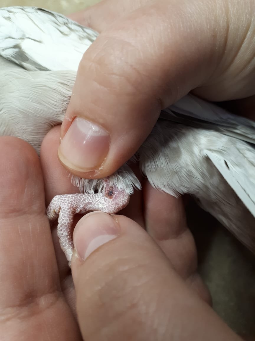 4. 1. Попугай корелла 2.Около года, самка 3. Корм Rio, минеральный камень 4. Длина светового дня около 12 часов Птица вялая, по большей части спит, не ест и не пьёт. Содрана кожа на лапках. На одну лапку не может наступать, периодически покусывает.В данный момент не могу прикрепить фотографии. Ей лапку, которая болит сильней, слегка промокнули йодом (и немного попало в рот, т. к. куснула ватку). Помёт такой же какой был до происшествия. Постелили в клетке полотенце. Лапой больной вообще не может шевелить. Первой делает хватательные движения, а на другой пальцы не двигаются... Сейчас ей дали немного водички с баралгином (обезболивающим).