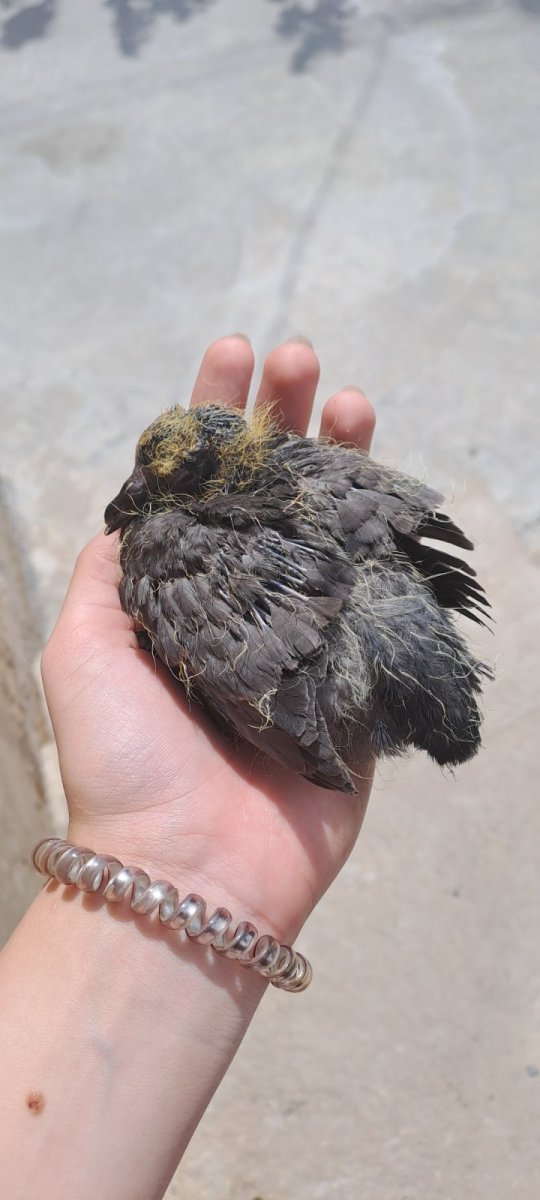 Здравствуйте, нашли маленького голубя. Шел и пищал вдоль дома, рядом была оживленная дорога и велосипедная дорожка. Ходил сначала один, если прилетали взрослые особи, ходил за ними, они от него уходят. Понаблюдали за ним со стороны, достаточно активно шел и активно пищал. Думали отнести за дом, где нет опасности, что его раздавят, но он все равно начинает идти в рандомные стороны и была большая вероятность, что придет в оживленное место сново. Поискали гнездо, не где не видно. Другие предположительные места в друднодоступном месте. Пока смотрели за ним, я пыталась узнать информацию из Интернета, там все 50/50. Как я поняла, слеток у голубей не бывает. В итоге забрали. Время уже был вечер, на момент отправления этого поста уже поздно. Он сейчас в коробке при комнатной температуре. Есть часть оперения, но также залысины на голове и части шеи. На лысых месятах какие-то желтые шерстинки. На груди такие-же залысинами. Глаза полностью открытые. Сколько ему предположительно дней? Что с ним лучше делать?