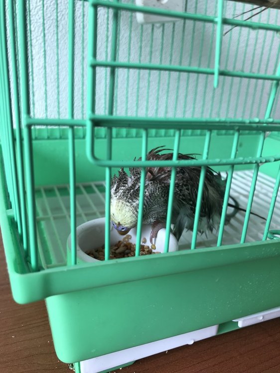 Здравствуйте, помогите пожалуйста! Волнистый попугайчик( чех) вылупился 30 марта. приобрели неделю назад. на второй день поранился крылом об кормушку и расклевал рану до какой то жуткой. Обрабатывали мирамистином, ромашкой. Рана достаточно быстро стала заживать, перестал себе расклёвывать. Буквально через день после улучшения , вышли на секунду из комнаты , приходим на клетке капли крови , крыло кровит, да ещё и сильнее, чем в прошлый раз.обработали снова мирамистином, потом эпланом (жидким)остановили кровотечение. Разводили таблетку траумель в поилке , пил по немного. Аппетит все время хороший( но кроме корма ничего не ест) даём корм Рио и сыпем в другую кормушку минеральную смесь Рио ( с красной крышкой). Ранка стала затягиваться, появилась темная корка. Сейчас волнует, то что очень часто спит, периодически хохлится. Трясётся. Сидит на жердочке отвернувшись от нас, периодически фыркает( чихает?) , хвост опущен. Иногда проявляет активность, начинает лазить по клетке , но потом снова отворачивается и трясётся. Иногда чирикает,пытался даже подпевать,когда с ним разговариваешь,но очень редко.Помет хороший. Еще его явно беспокоит, что перья в жире после эплана. Очень переживаем за его состояние, тк к сожалению не имеем возможности поехать к орнитологу пока.одна надежда на вас. Помогите выходить птенчика, он нам очень дорог! вот такая рана была вначале, до того, как зажила. вот такой он сейчас весь в жире, после эплана( про решетки знаю, уберу)