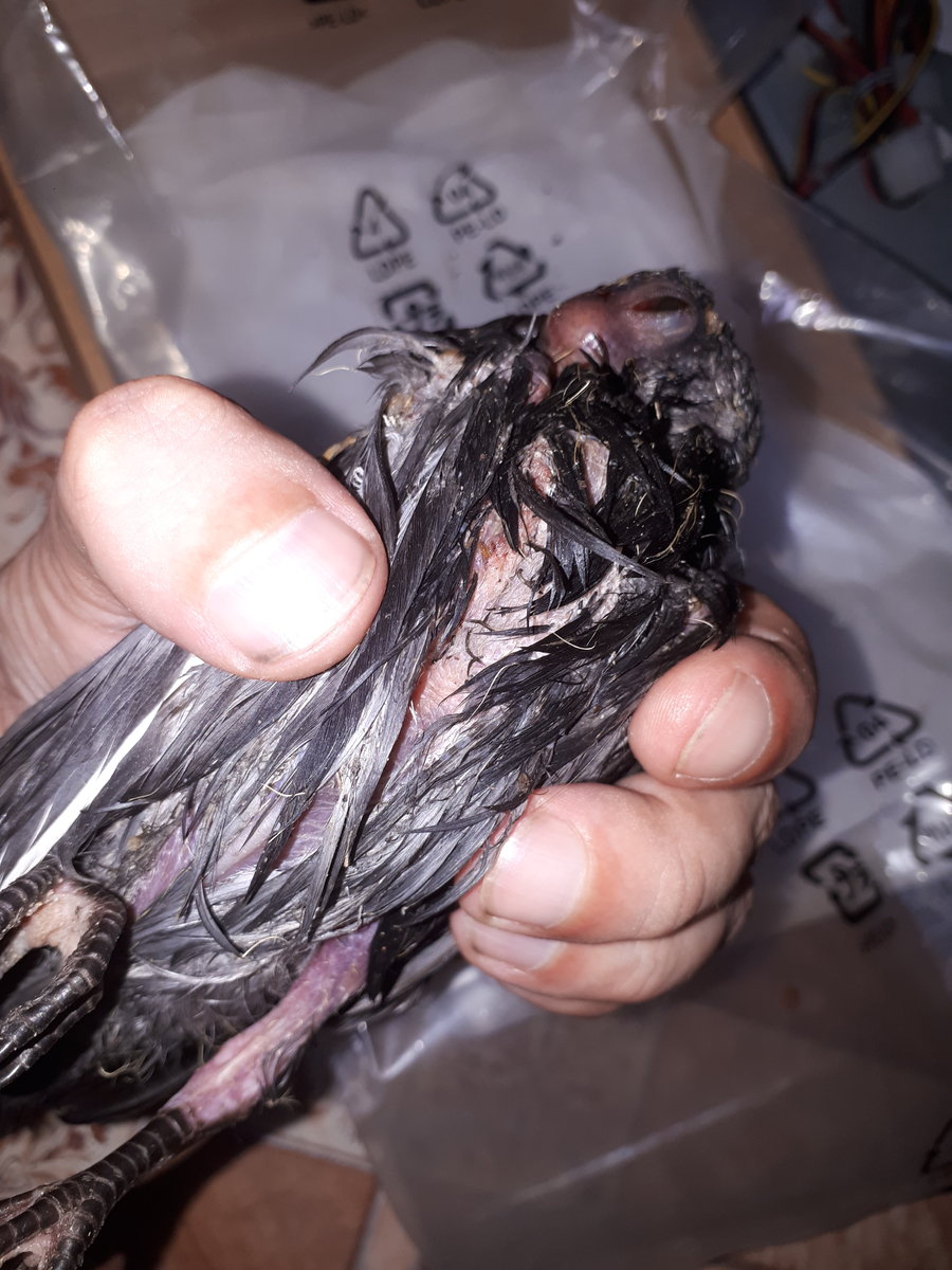 Здравствуйте! Увидел из окна как кот играется с птицей. Сжалился и отбил у кота голубёнка. На вид ему дней 15 (я не спец - программист по специальности). Возможно упал с высоты 5 этажного дома. Синяк в области глаза. Рваная не кровоточащая рана в области шеи. В ране возможно переломана какая то кость. Если тревожить, то слабо пищит. Живу в небольшом городе, ветеринара нет. Сделал быстро снимки и перестал его тревожить, положил в коробку. Активный, на ногах стоит, крыльями шевелит. Возможно не жилец, но постараюсь сделать всё возможное И ЖДУ ВАШЕЙ ПОМОЩИ СОВЕТОМ! ЧТО ДЕЛАТЬ? ПОДСКАЖИТЕ.