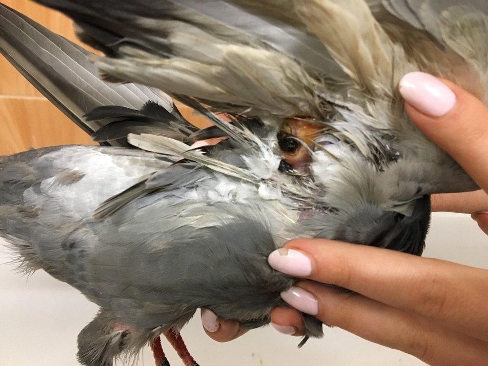 Очень нужна помощь!!! С полгода появился волнистый попугай, прилетела на работу с улицы. Была маленькая и очень худая, с течением времени вроде стала полнее, проблем со здоровьем не было. Пару месяцев назад начала чесаться, и лысеть, первая мысль - клещи, начали лечить, в зооаптеке посоветовали амитразин, обрабатывали клетки дельцитом. После чего симптомы поутихли, но нароста перьев так и не было. Пару недель назад начала опять чесаться, сходили в ветлечебницу, у нас всего 1 врач ориентируется на попугаях, но мне она в итоге показалась не компетентной. Сказали клещей нет, сдавали кал на анализ, тоже всё хорошо паразитов нет. А сегодня появилась вот такая ранка, отек глаза. Вчера весь день чесала его. Уже не знаю что лечить и к кому обратиться за помощью.
