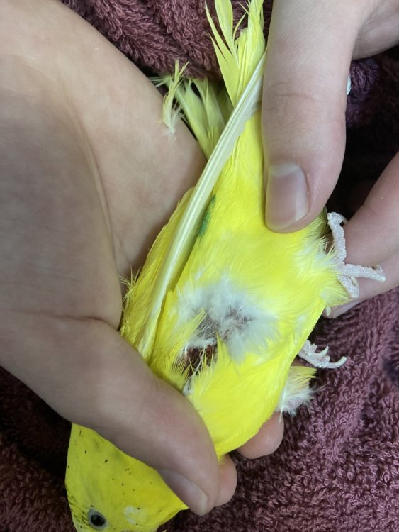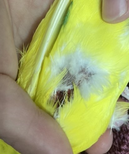 здравствуйте, у нас в городе нет ветеринаров, занимающихся птицами, поэтому приходится писать сюда. +- неделю назад заметили, что он начал пищать во время того, как чешет спинку. не понимали в чем дело, сейчас решили посмотреть, залили хлоргексидином, рана размокла и стало видно вот это. помогите, пожалуйста. подскажите, что это может быть и что делать? кушает хорошо, активный, помет вроде нормальный.. не знаем что думать. кушает корм рио для средних попугаев, в рационе есть минеральная смесь и, также висят в клетке минеральные камни. даем морковку, огурцы, яблоки и иногда сладкий перец.