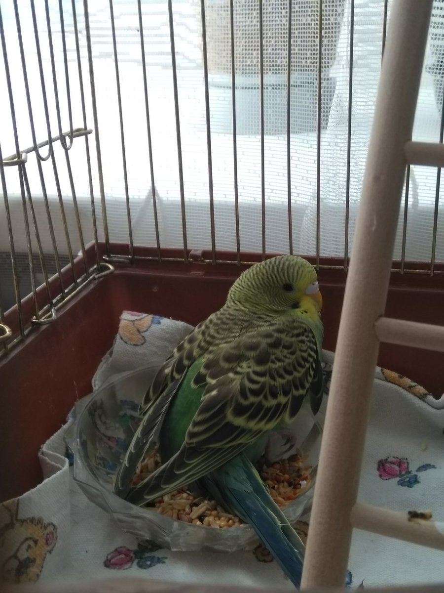 Доброе утро всем. Ну, или, не доброе Прошу вашей помощи. Совершенно выбилась из сил пытаясь помочь волнистому попугайчику, а кончилось все плачевно. Птенец волнистого попугая, 40 дней (вылупился 4го июля) Пока малыш находился в гнезде все было в порядке (по моим наблюдениям). Приемных родителей кормила хорошо (каши, яйца, корм престиж, салат, морковь, творог не очень часто, по совету орнитолога в начале насиживания давала пиковит, в клетке есть панцирь каракатицы птицы его ели)) Прилагаю фото клетки с подвешенным домом. Родная мама малышей (их в выводке трое) погибла. Вышла из дома, долго отряхивалась, когда заходила в дом у неё начиналась истерика, билась там и сразу на выход. Я подложила яйца другой парочке (всего парочек две). Из этих яиц и вылупились три птенца. С самым старшим возникли проблемы, когда он вышел из домика. Вышел на дно клетки, я подсадила на палочку его. Увидела что одну лапу он поджимает к себе, сидит неуверенно. Дальше все развивалось стремительно. Родители малыша кормили ещё день, я надеялась что лапу он ушиб. Он заходил в дом обратно к остальным и там его кормили. Когда на следующий день он вышел окончательно было ему 32 дня, пересадила в отдельную клетку. Предлагала яйцо, корм и воду. Кушать отказался. Подкормила его из шприца растворенным в воде желтком. Уже утром того же дня к нам пришёл орнитолог. Осмотрев птицу он сказал что она худовата, накормил из шприца безмолочной кашей hainz. Сказал кормить три раза в день по одному шприцу, шприц тонкий инсулиновый. Прописал так же пиковит раз в день, глюконат кальция в рот раз в день. Предположительный диагноз - нехватка витаминов и кальция. На лапу птенец мог иногда опираться но не более. В той маленькой клетке где сидел птенц была оборудована полка для него. Чтобы не сидел на жердочке а сидел на полке. Фото прилагаю. К концу этого дня покормив его из шприца кашей (ел плохо) и положив его на полочку я увидела что он опирается уже на клюв и крылья. Вторая лапа тоже начала отниматься. Врач сказал давать декстаметазон в растворе с водой 1:10 в клюв один раз в день по утрам, плюс то лечение которое было назначено ранее. Никах изменений в хорошую сторону мне добиться не удалось. Вечером через два дня у нас случился запор с которым я боролась левомиколем в попу по совету врача. Запор прошёл но состояние не улучшилось. На утро я приняла решение вести малыша в клинику к другому орнитологу. Нам сделали уколы кальция, травматина (тк предположили травму), байтрил (тк кал стал чёрным; как пояснила врач это из за потери гемоглобина и испорченной микрофлоры декстаметазоном. Ещё был укол препарата на букву а. Ещё мазь такая есть. Простите, название из головы вылетело. Врач ощупала суставы ног, сказала что видит разницу и один как бы выбит. Плюс диагностировали травму позвоночника. В заключении нам написали очень много всего. Постараюсь прикрепить чуть позже фото заключения. Врач решила зафиксировать лапу, которая отнялась первой. У второй ещё был хватательный рефлекс. Чтобы зафиксировать ее она взяла клейкую белую ленту. Попросила меня держать крылья птички у основания. Я начала держать а она заматывала лапу. И к моему ужасу птенец задергался и сломал себе крыло тем самым. Я неправильно держала как сказала врач. Крыло тоже зафиксировали лентой. Осколочный перелом. Снимков не делали. Взяли анализы на просте