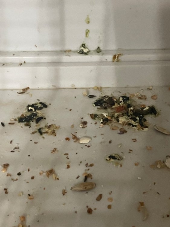 1. Корелла, самка 2. 1 год 7 месяцев (примерно) 4. Корм RIO для корелл, иногда даю фрукты/овощи (яблоко, груша, морковь, банан) В клетке есть сепия, соль (в виде камня) В воду ничего не добавляем 5.Не допускаем сквозняка, окно долго не держим открытым, клетка стоит возле отопления (УФ лампы нет) Клетку всю мою раз в месяц, поддон раз в два дня, жерди раз в два дня. Кормушки и поилки утром. Заметил, что птичка ест свой помёт. В комнате аэрозолями и т.п не пользуемся, пол хлоркой и другими средствами не протираем. Гуляет весь день. Спит 11-12 часов, световой день 10-11 часов 6. В 16:30 по МСК времени птицу рвало сухим зерном, рвота была желтая, пены не было, птица дрожала, когда её рвало. Подозреваю, что дело в клубнике (дал пол дольки и ее выраало через три часа) После рвоты ведёт себя как обычно: гуляет, летает, бегает туда-сюда. Даже ела сухой корм (о чём я сейчас жалею, т.к где-то писали что сухой корм после рвоты нельзя) Помёт тоже не изменился (пока что) 7. 2 часа 8. Не лечил Фото помёта: @Zosia @KamaRo Собираюсь дать энтеросгель в 2мл шприце. Какой кашей кормить, давать ли нистатин?