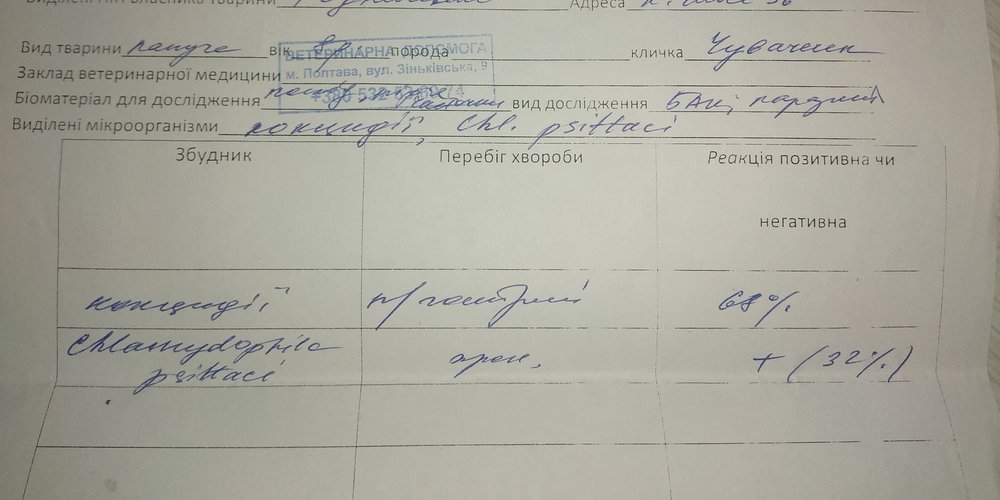 3. Здравствуйте Волнистый попугай, самец 8 лет, содержится один, раньше была пара. Корм основной- Prestige, дополнительно фрукты, овощи, зелень (лишь то что можно) рис белый, красный. Из клетки не выходит, неправильно срослось крыло в юности, летать не может. Вода кипячёная иногда добавляю каплю лимона. Из витаминов Триест, Беофар, Чиктоник весной. Мел и корокатицу не ест. Где-то месяц назад заметила что попискует в такт дыханию, при этом клюв не открывает, после начинает кашлять, прокашлчеться и всё нормально. После началась рвота после еды, ощущение что ему что то мешает проглатывать пищу. Сдала анализ помёта, результат такой: Кокцидиоз 68%, орнитоз хронический, присутствует сальмонелла. Чувствительность к бровасептол, сульфетрисан. Было рекомендовано на сайте для голубей pigeonshop заказать salmonella mix 4 in 1 от сальмонеллёза, это для голубей и птиц вольерно-клеточного содержания, TOTAL DISINFECTION COMBINATION от кокцидиоза. Но смущает что это всё для голубей, уместно ли такое лечение? Сейчас даю Атоксил, кормлю рисом и гречкой, запаренные кормом.