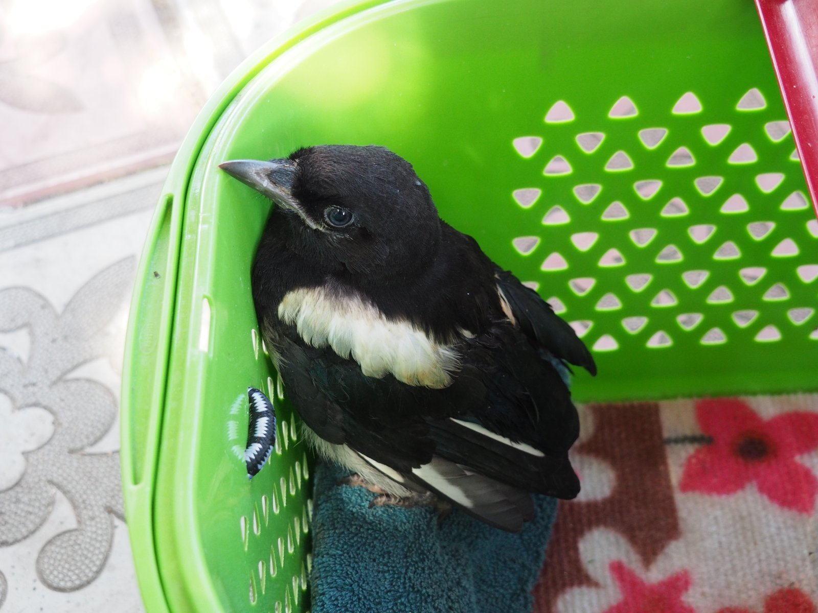 3. Здравствуйте, уважаемые любители птиц! Очень нужна ваша помощь, любая консультация. 31 июля к нам попал слеток сороки. Сразу оговорюсь, что мы знаем, что подбирать таких птиц нельзя, так как за ними присматривают родители, и вообще, слетки - это естественно. Но этого загнало в угол на нашем дачном участке сразу четверо котов. Их удалось отогнать, а птица самостоятельно взлетела на крышу беседки. Очевидных травм или ран на ней обнаружено не было, но крылья она держала как-то низковато. Родителей птенца ни видно, ни слышно нигде не было. Решено было отнести его на луг возле речки, где нет котов, на участке оставлять было категорически нельзя. Смутило то, что птица спокойно сидела в руках и не хотела с них слезать, не пыталась вырваться, в том числе и на лугу. Её с трудом получилось снять с пальцев, после чего она не захотела ни улетать, ни убегать, а просто сидела на месте. Решили, что, возможно, коты повредили-таки ей крыло, и принесли обратно. Поселили в корзине в комнате, кормили силой, запихивая в глотку еду (запаренные хлопья, тёртое яблоко, морковь, отварное и натертое куриное сердце, отварное яйцо), еду глотал, не выплёвывал, напоили водой, капая на клюв. Помет сначала был жидкий и фиолетовый, позже, после кормёжки, стал зелёный. Все это время птенец был довольно неактивный, будто заторможенный, лишь спустя некоторое время начал прыгать по комнате, трещать и даже немного летать (с пола на диван, например). Вынесли на улицу - сидит на руках и улететь даже не пытается. Был уже поздний вечер, решили дать ему заночевать и выпустить с утра. Утром накормили, он даже сам поел из миски, стал активнее, начал немного летать (с карниза на карниз), снова вынесли на улицу, выпустили. Улетать с рук сначала не хотел, в итоге начал понемногу перелетать с ветки на ветку, а потом и вовсе улетел. Выдохнули с облегчением. Вечером того же дня нам его принесли соседские дети. Сказали, что он прыгал по дороге, и его чуть не переехала машина, и что у него что-то с крылом. Держали его в руках, он совершенно не вырывался, спокойно сидел. Забрали опять на ночь. Птица был более потрепанным и снова очень вялым, глаза закрывал, кормили и поили силой, позже начал есть очень активно, даже выхватил большую жилку из тарелки, пришлось силой отбирать, чтоб не подавился. В общем, начал есть с аппетитом. На ночь глядя снова оклемался, начал исследовать комнату, пытаться сесть на карниз. Почему-то совершенно не боится людей, иногда сам садится на руку, на голову, сидит в руках. Как будто какой-то ручной... С утра был опять вялый и снова еду в него запихивал силой, а потому решили пока не выпускать. Только часам к 14, через время после принудительной кормёжки, снова ожил, сам нашел миску и поел из неё, съел большой кусок сливы и мешанку. Вынесли на улицу - не летит. После того, как чуть-чуть полетает по комнате, крылья будто немного висят, опускаются. И иногда выпрямляет лапу и сидит с расправленной вместо того, чтобы хвататься ею за корзину. Подскажите, пожалуйста, что с ним делать? Складывается впечатление, что птица, хоть уже на вид почти взрослый, не понимает, как самому себе добывать еду. Подозрительно ручной. Его легко поймали дети, а котам, которых на дачах просто тьма, поймать ещё легче. У птицы как-будто нет элементарного инстинкта самосохранения - она не убегает ни от машин, ни от людей. Родители его, по