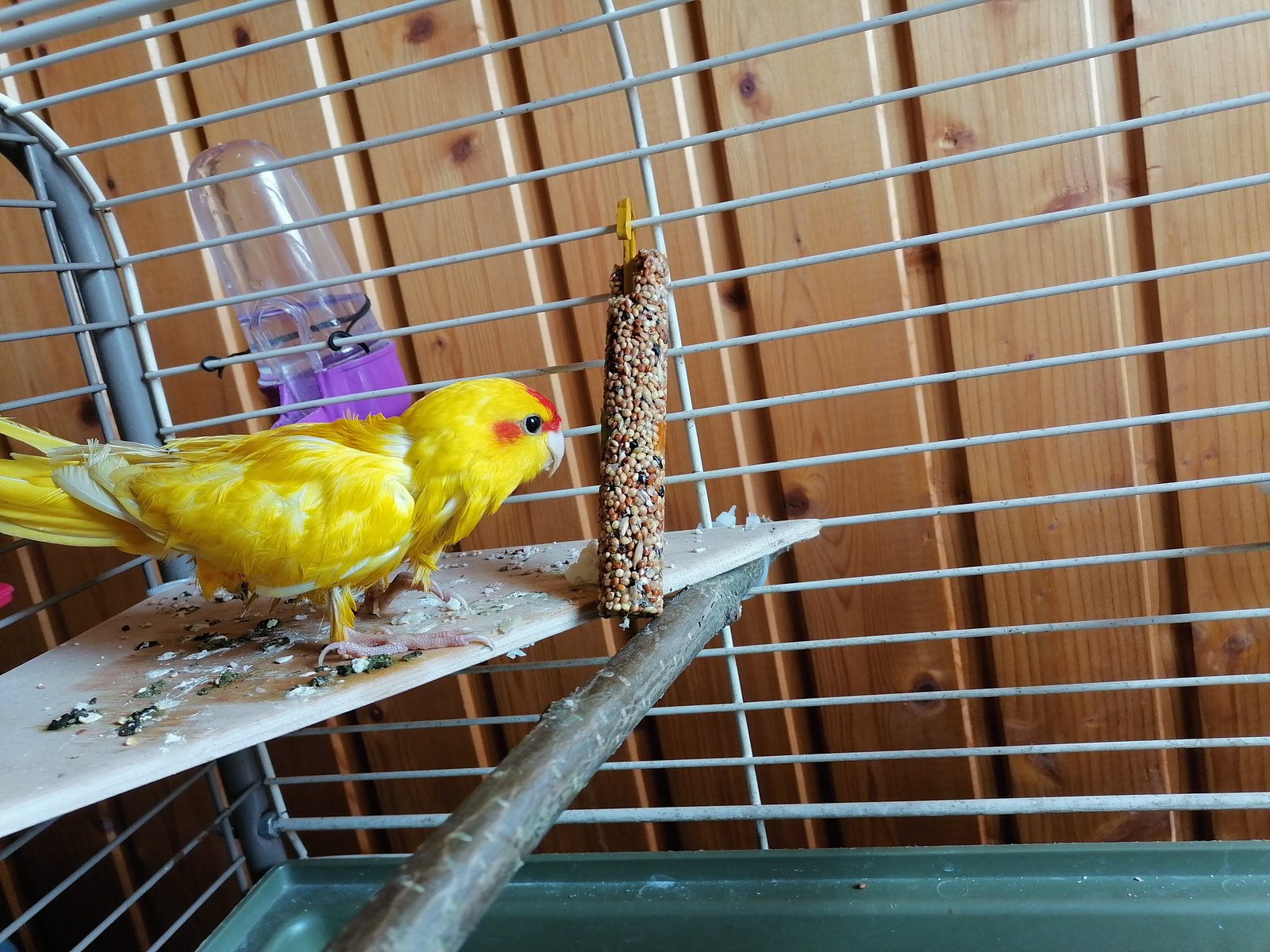 Здравствуйте. Помогите, пожалуйста, понять, больна наша птичка или нет. Стала часто спускаться вниз, на решётку, подолгу сидит там, нахохлившись.