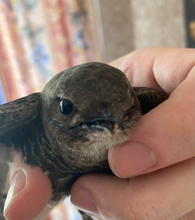 Здравствуйте! Помогите, пожалуйста, вчера днём краем глаза в окно увидела, как что-то упало на пустую парковку. Приблизила на телефон - птичка. Минут 15 сидела, не взлетала. Я подумала, что надо перенести её в траву, так как, если приедет машина, то точно раздавит её. Взяла воды, надела перчатки и пошла перенесла её на траву. Оказалось по-моему стриж. Я просто первый раз с таким сталкиваюсь, поэтому совершенно не знаю и не понимаю, что делать. Полила его водичкой, так как жара ужасная. Вроде он даже попил, оживился. Вечером пошла его проведать, сидит, ушел чуть в глубь травы. Погуглила, что кормить их можно только насекомыми. Купила сверчков замороженных, больших (вроде банановых). Не стал есть. Оставлять на земле пишут нельзя, верная смерть для них. А мне очень страшно, что я что-то сделаю не так и ему будет хуже. Но как говорится, глаза боятся, а руки делают. Переложила его в большую пластиковую миску, постелив там бумажные полотенца. Сверчков из рук не берёт. Вроде видимых повреждений нет. Я особо его и не тревожила, боюсь сама ему что-то повредить. Но вроде на ножки встаёт, передвигается, неуклюже правда, но всё же. Крылья вроде по моему тоже целы. Вычитала, что если сам не ест, то можно сделать выжимку из сверчков. Намяла их в пакете, добавила воды, ещё намяла всё вместе. Набрала в шприц и попыталась дать ему. Прям сильно рот не открывает, в основном все по подбородку стекает, но вроде в рот все же попадает. Ещё больше оживился. Обосрал меня 😂 и даже так активно начала раскрывать крылья, что сорвался с руки, но мы были среди гаражей и он буквально через пару метров шмякнулся. Но я руку не поднимала с ним, поэтому надеюсь, что высота не большая была. Сразу его подняла и продолжила из шприца кормить. Вывезла на открытое пространство, там уже не взлетал. Только дрожал на руке. Оставила его в гараже, там сухо и комфортно, ничем не захламлено. Когда уезжала вчера, сидел закрыв глазки, слегка тихонечко чирикая. На всякий случай оставила ему в крышечке вымоченных и подавленных сверчков. Утром приехала, на салфетках был помёт. Не разбираюсь нормальный или нет, но вроде как обычные птичьи какашки 😅 Пробовала его кормить, с рук все так же не берёт, из шприца тоже не особо ему в рот попадает, но что-то точно попадает. Очень боюсь сама открывать ему рот, во-первых, не умею, во-вторых, очень боюсь ему навредить. Опять вывезла на открытый участок - не взлетел. Может я, конечно, мало жду. Потому что стою с ним не долго, минуты 2-3. Он сидит просто на руке и немного дрожит. Я его взвесила, раза 3 и вроде все три раза 43 грамма показывало. Утром ещё раз покакал на руке на салфетку. Днём привезла ему домовых сверчков, они меньше, но и их не ест, ни с руки, ни с крышечки. Опять из шприца по отпаивали жижей сверчковой. Привезла ему «тауфон» и одну капельку капнула в чуть приоткрытый рот. Боюсь сильно давить. Ещё две капли капнула тиамин хлорида. Из пластиковой миски пересадила его в картонную коробку тоже с бумажными полотенцами. Днём на полотенцах были какие-то мелкие пушки от него, не знаю что это и хорошо или плохо это. Очень хочется ему помочь, но очень боюсь, что что-то сделаю или уже делаю не так. Даже не знаю куда его отвезти, в плане врача, у нас вроде нет тех, кто дикими птицами занимается. Очень страшно открывать ему рот насильно, но читаю, что только так их можно вскормить. А там ещё и протал