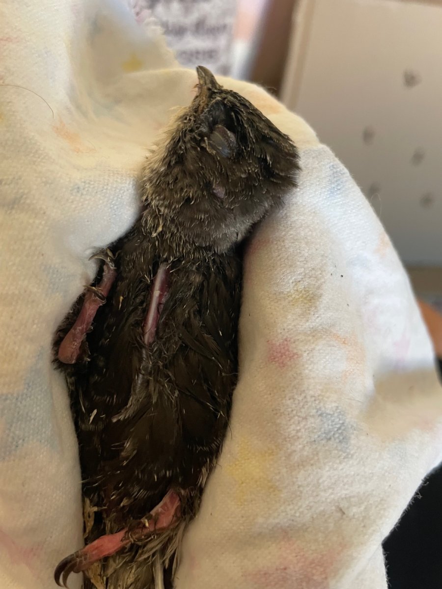 Здравствуйте! Помогите, пожалуйста, вчера днём краем глаза в окно увидела, как что-то упало на пустую парковку. Приблизила на телефон - птичка. Минут 15 сидела, не взлетала. Я подумала, что надо перенести её в траву, так как, если приедет машина, то точно раздавит её. Взяла воды, надела перчатки и пошла перенесла её на траву. Оказалось по-моему стриж. Я просто первый раз с таким сталкиваюсь, поэтому совершенно не знаю и не понимаю, что делать. Полила его водичкой, так как жара ужасная. Вроде он даже попил, оживился. Вечером пошла его проведать, сидит, ушел чуть в глубь травы. Погуглила, что кормить их можно только насекомыми. Купила сверчков замороженных, больших (вроде банановых). Не стал есть. Оставлять на земле пишут нельзя, верная смерть для них. А мне очень страшно, что я что-то сделаю не так и ему будет хуже. Но как говорится, глаза боятся, а руки делают. Переложила его в большую пластиковую миску, постелив там бумажные полотенца. Сверчков из рук не берёт. Вроде видимых повреждений нет. Я особо его и не тревожила, боюсь сама ему что-то повредить. Но вроде на ножки встаёт, передвигается, неуклюже правда, но всё же. Крылья вроде по моему тоже целы. Вычитала, что если сам не ест, то можно сделать выжимку из сверчков. Намяла их в пакете, добавила воды, ещё намяла всё вместе. Набрала в шприц и попыталась дать ему. Прям сильно рот не открывает, в основном все по подбородку стекает, но вроде в рот все же попадает. Ещё больше оживился. Обосрал меня 😂 и даже так активно начала раскрывать крылья, что сорвался с руки, но мы были среди гаражей и он буквально через пару метров шмякнулся. Но я руку не поднимала с ним, поэтому надеюсь, что высота не большая была. Сразу его подняла и продолжила из шприца кормить. Вывезла на открытое пространство, там уже не взлетал. Только дрожал на руке. Оставила его в гараже, там сухо и комфортно, ничем не захламлено. Когда уезжала вчера, сидел закрыв глазки, слегка тихонечко чирикая. На всякий случай оставила ему в крышечке вымоченных и подавленных сверчков. Утром приехала, на салфетках был помёт. Не разбираюсь нормальный или нет, но вроде как обычные птичьи какашки 😅 Пробовала его кормить, с рук все так же не берёт, из шприца тоже не особо ему в рот попадает, но что-то точно попадает. Очень боюсь сама открывать ему рот, во-первых, не умею, во-вторых, очень боюсь ему навредить. Опять вывезла на открытый участок - не взлетел. Может я, конечно, мало жду. Потому что стою с ним не долго, минуты 2-3. Он сидит просто на руке и немного дрожит. Я его взвесила, раза 3 и вроде все три раза 43 грамма показывало. Утром ещё раз покакал на руке на салфетку. Днём привезла ему домовых сверчков, они меньше, но и их не ест, ни с руки, ни с крышечки. Опять из шприца по отпаивали жижей сверчковой. Привезла ему «тауфон» и одну капельку капнула в чуть приоткрытый рот. Боюсь сильно давить. Ещё две капли капнула тиамин хлорида. Из пластиковой миски пересадила его в картонную коробку тоже с бумажными полотенцами. Днём на полотенцах были какие-то мелкие пушки от него, не знаю что это и хорошо или плохо это. Очень хочется ему помочь, но очень боюсь, что что-то сделаю или уже делаю не так. Даже не знаю куда его отвезти, в плане врача, у нас вроде нет тех, кто дикими птицами занимается. Очень страшно открывать ему рот насильно, но читаю, что только так их можно вскормить. А там ещё и протал