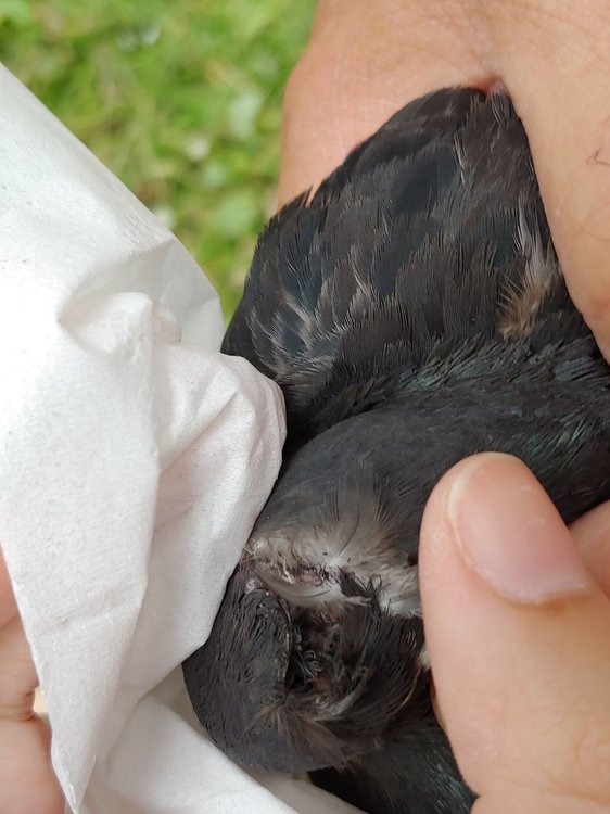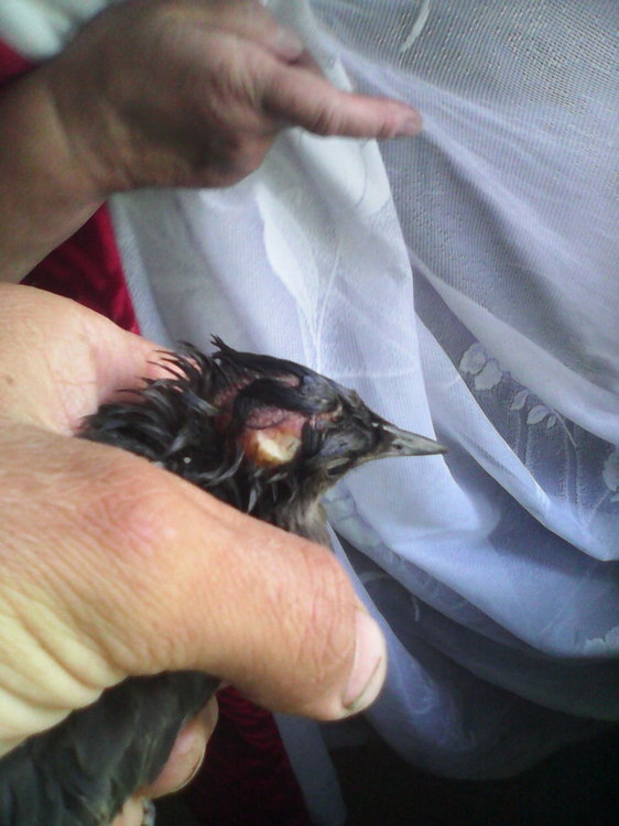 9. Добрый день. Днем подобрал скворца. Слеток Разбита голова - на макушке рана, кости черепа вроде целые. С правой стороны сбоку вмятина на черепе. Есть опухоль на груди под правым крылом (но ни синяка, ни гематом нет). Левое крыло держит высоко, не так как правое. Левый глаз открывает на половину, правый чуть больше (глаза чистые). Я рану почистил, промыл хлоргексом, промыл смесью диоксидин+новокаин. Уколол ему цефтриаксон 0.03мл (был под рукой. Нужно ли колоть или это лишнее, вроде так то подходит для этого случая), на рану нанес немного солкосерил геля. Ранка не кровоточит, опухоли почти нет. Запах от раны был очень слабый, сейчас уже нет его. Нужно ли что то давать для головы (пирацетам) на случай сотрясения? Фото пока такие, чуть позже выложу нормального качества