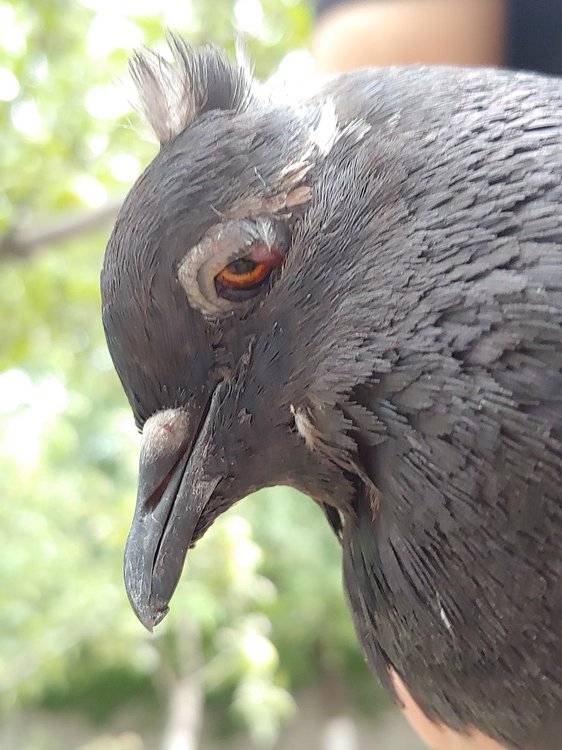 Здравствуйте! Вчера, 19.12 утром подобрали раненого голубя. Похоже, что заклевали птицы. Был найден в 6 утра на снегу, сидел на лапах, рядом никого не было. Раны небольшие на голове(затылок), под левым глазом, на крыле. Ранки промыли перекисью. Посадили в картонную коробку, проделали отверстия для воздуха. Поим голубя держа в руках, пьёт хорошо. В коробке не пьёт, не ест. Принудительно накормили варёной гречей(без соли), перловкой, это что было под рукой. Кормили уже сегодня, вчера был вообще плохой, сегодня более бодрый. В целом почитали правила содержания вкратце, отделили от других животных, моем руки, стараемся не шуметь, сверху его коробка затянута стреч плёнкой и положили картонку, чтобы не беспокоить перепадами света. Проблемы: 1.Травма головы 2. Зелёный обильный стул, жидкий. 3. Сидит, голова на бок или спит на перевёрнутой голове. 4. Перепачкался в помёте! Нужно как-то помыть? 5. Не знаем чем обработать ранки ещё и какие нужны лекарства при таком стуле и при травмах? 6. Глаза разные, один тёмный, другой светлый - это нормально? На свет реагирует. 7. Не знаем, всё ли делаем правильно