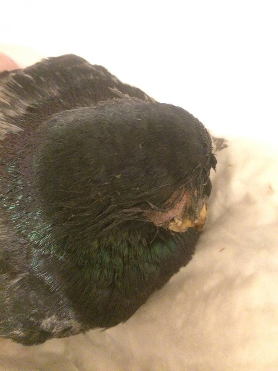 Добрый день. В течение прошлой недели на моё окно залетал голубь, с явными признаками болезни. Вчера, у меня получилось его поймать. По всей видимости, у голубя, как минимум, очень запущенный трихомоноз. Дал ему метрогил для инфузий 1мл, флуконазол 50 мг, разведённый в 5мл воды 0,17 мл, гепатовет 0.25 мл, а также, смазал наросты внутри и снаружи клюва метрогилом дента. Главные опасения у меня вызывает его клюв, а также, по-видимому, кровь в помёте. Скажите, пожалуйста, присутствует ли возможность того, что голубь лишится клюва, и как можно её избежать? @маленький принц, можете помочь?