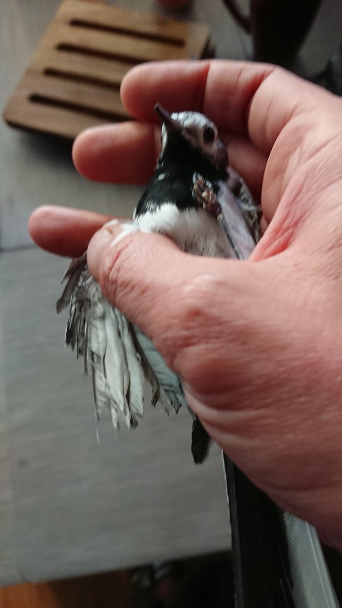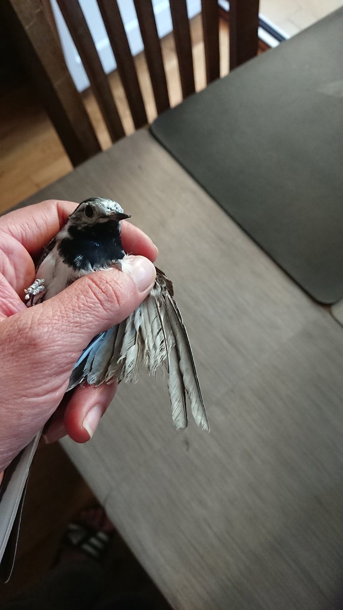 Добрый день! Прошу помощи! Подобрали трясогузку, стояла в глубокой луже под машиной. От рук убегала, но как-то слабо, как будто закручивалась. И на мой взгляд, тяжеловато дышит (видео приложу) за час дома отогрелась. несколько раз летала по кругу и приземлялась то на руку, то на пол ровно. сейчас поактивнее ведёт себя., но дыхание сбивчивое. попыталась послушать ухом - хрипов/сипов не слышу. рот не открывает (м.б. это нормальное её дыхание???) - я впервые сталкиваюсь так близко... 1. Видимых повреждений нет. 2. Рот тёмный, почти черный, наростов видимых нет. кончик языка словно прозрачный 3. вес 14 грамм 4.яйцо +морковку (что есть под рукой пока) потолкла вилкой -не ест. хочу за кормом сходить для насекомоядных - что купить-то? 5. помёт белый-бежевый(чуть желтее чем лист). присутствует вода - но в луже стоял. (я сфотаю , не получилось фото...) есть чуть чуть серо-зеленого с вкраплениями 6. как будто ручной...не боится вообще. хотя вроде и не птенец 7. засыпает или ...периодически т.е. останавливается ,закрывает глаза и стоит дремет. (наммой взгляд - плохой признак) как дышит - по ссылке https://studio.youtube.com/video/TguiuLRaHBU/edit/basic за звук извините - сломан микрофон в телефоне по видимому у меня только сизарь живёт... посмотрите, пожалуйста, кто сталкивался с насекомоядными товарищами....- 6 ответов