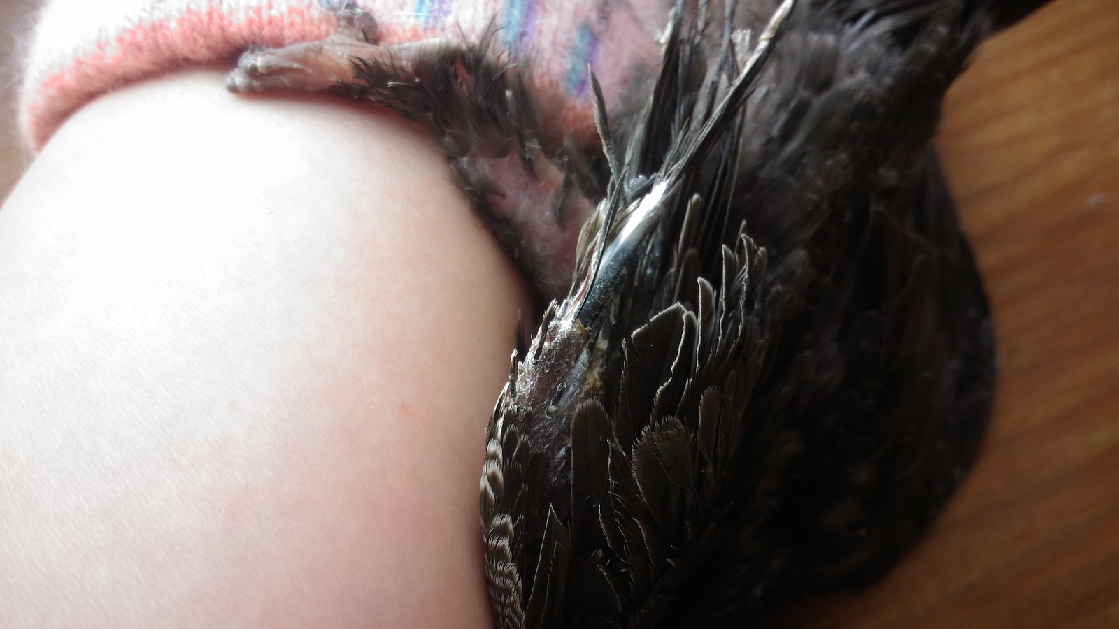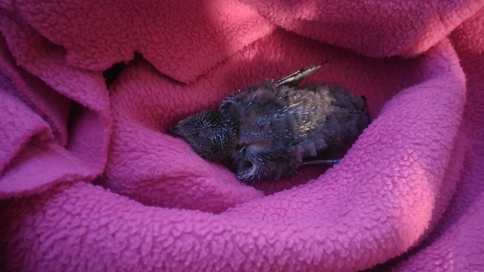 Добрый день! Подобрали на улице стрижа: взрослый, проблемы с крылом. Орнитолога в городе нет хорошего. Правое крыло в норме, машет им. Левое опущено, отведено в сторону, плохо шевелится. Была кровь и грязь, промывали перекисью. Сейчас там видно кожу. Торчит что-то, возможно, кость. Сказали, что он ещё молод, оперение не выросло (на больном крыле с обратной стороны будто перьев не хватает ещё), это светлое, что приняли за обломок кости - ещё невыросшее перо. А так - небольшая рана и ушиб. Фото приложила. Помогите, пожалуйста, с диагностикой и лечением.
