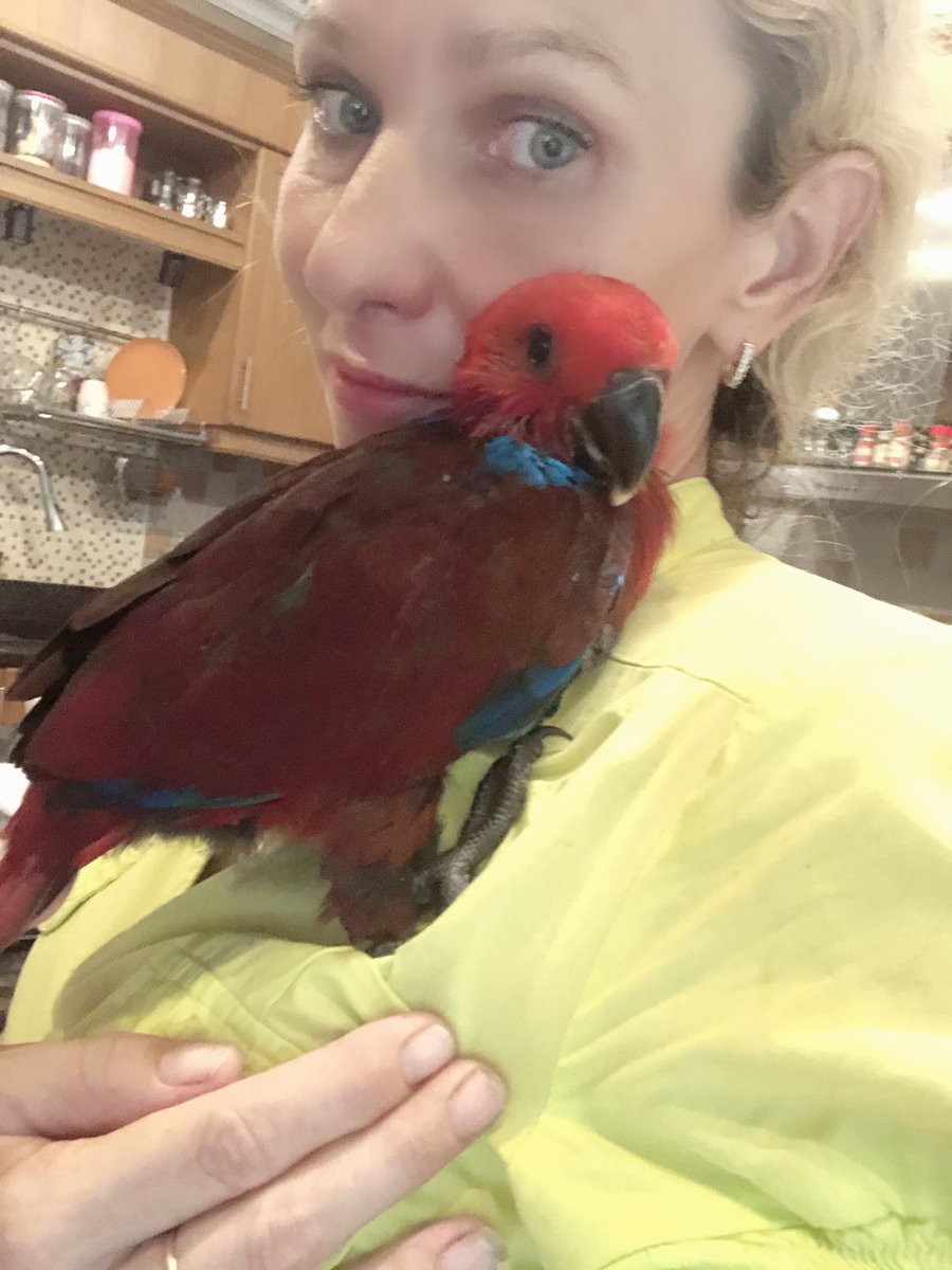 01.02.2023 года я стала мамой моей первой птицы Эклектуса Мирона. Это выкормыш, абсолютно ручной, милый и уже очень любимый, но взрослый, ему 12 лет. Хотя, по меркам крупных попугаев, слово "взрослый" слишком громкое. Молодой ещё? Готовилась к пополнению в семействе, как мне казалось, тщательно - с ноября прошлого года изучала всевозможные статьи о содержании, питании, времяпрепровождении и так далее, общалась с заводчиками. Приобрела Мироше огромный вольер, который располагается на втором этаже дома. Он настолько большой, что не транспонтабелен без разбора в другие помещения. Возможно, это моя первая ошибка. С одной стороны, место спокойное, но при этом есть хороший обзор первого этажа, чтобы малышу было не скучно. Однако, сейчас уже меня смущает, что он сидит как бы на возвышении. А это может привести к наглости птицы. Обдумываю переместить большой вольер на 1 этаж, чтобы он был на уровне моих глаз. Хотя мне все равно приходится вставать на цыпочки, а если птиц сел на клетку, то все равно будет выше меня. Рост у меня небольшой, а вольер взяла по максимуму. Также, в последствии купила среднюю клетку для 1 этажа. Мы много времени проводим именно тут, я переносила Мирона в нее, чтобы всегда быть с ним в контакте. Плюс, а теплое время года ее можно выкатить на улицу. Что уже 2 раза практиковала, когда было 20 градусов на улице. Но пока ещё в Ленобласти достаточно холодно. Также купила маленькую клетку-переноску. Там мы в основном спим, большой вольер накрывать проблематично, да и достаточно шумно спать в гостиной. А спать мы теперь ложимся в 22, планируем дойти до 21 с подъемом в 9.30 утра, дабы не провоцировать половую активность птицы, при которой, как выяснилось, он становится весьма жесток и агрессивен, о чем у меня есть созданная тема. Повторяться не буду. Перемещения моя птица воспринимает нормально, поэтому проблемы в этом никакой нет. Улицы тоже не боится, хоть и жил всю жизнь в квартире. Этому способствовал, как мне кажется, прием витаминов после переезда. Также как и быстрой адаптации птицы в новом доме (около 1 месяца). В витаминах есть и плюс, и минус. С одной стороны, Мироша быстро повеселел, пошел на руки, легко реагировал на любые манипуляции, в том числе прием лекарств 2 раза в сутки через шприц (нашли 2 грибка после полного осмотра и ожирение вокруг печени). Но также у него активизировалось половое поведение, что, собственно, и отвлекало его от всевозможных стрессов, улицы, собак, так как всё, что его интересовало - мои руки, почётно выбранные в самку. А я по незнанию, ещё и поощряла это 1.5 месяца. Результат - пишу эти строки с перевязанными руками, читаю информацию о воспитании, пытаюсь корректировать поведение. Спасибо форуму и поддержке местных обитателей, так как вчера от отчаяния я уже дошла до мысли, что попугая придется отдать, что я не справляюсь...? Но сегодня у меня открылось второе дыхание, я осознала проблему, подсказали решения, и мы начинаем жизнь и общение по-новому??????? Здесь я планирую периодически писать свой опыт в надежде, что кому-нибудь это, возможно, поможет. Может быть просто будет кому-то интересна наша жизнь. Ну и для себя, как некую летопись начавшейся эры совместной с попугаем жизни, ведь вполне возможно, что он проживет со мной всю жизнь! С учётом моего возраста, может даже пережить меня, мне исполняется 37 лет этим летом...? Желаем всем пр