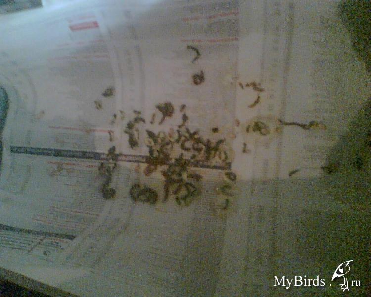 маленький принц Опубликовано 17 января, 2013 Автор #104 Опубликовано 17 января, 2013 зёрнышки с хлеба (кажется вроде бы похоже кунжут наверное)смёл вместе с парой (осыпавшихся вместе с зёрнышками) мелких хлебных крошекно вот ни пероловку ни пшено за еду похоже не считает устроил нормальную кормушкуи прилепил сбоку кормушке тяжёлый магнитчтобы как вчера не смахнул с тумбочки лёгкую корммушку помёт за ночь выглядит вот так